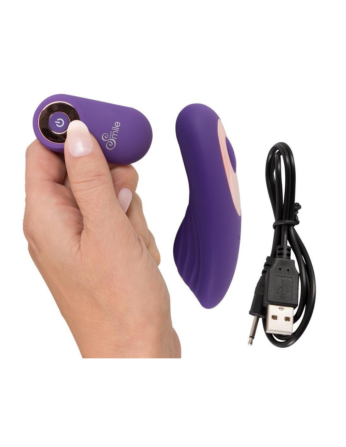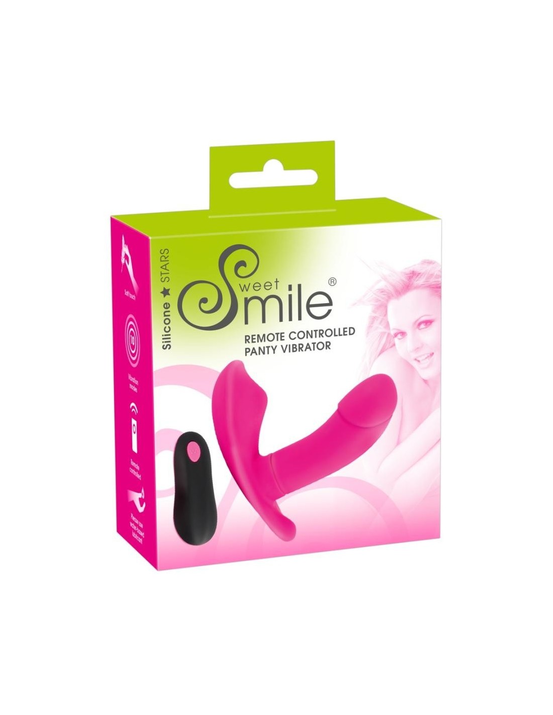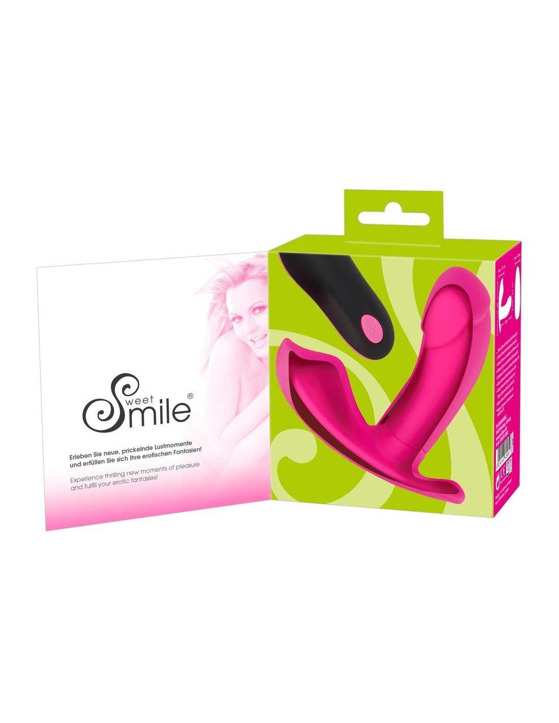 Questo vibratore RC Panty di Sweet Smile è un piacere femminile veramente potente! Con la sua forma anatomica ideale, abbraccia letteralmente la vulva e stimola ampiamente il clitoride e la vagina con le sue 10 eccitanti modalità di vibrazione e scanalature di stimolazione. La sua forma permette di indossarlo in mutandine, mentre il telecomando facilita il funzionamento a mani libere e incoraggia il gioco eccitante in pubblico con il controllo dato al partner - anche in ambienti umidi, in quanto è impermeabile.
