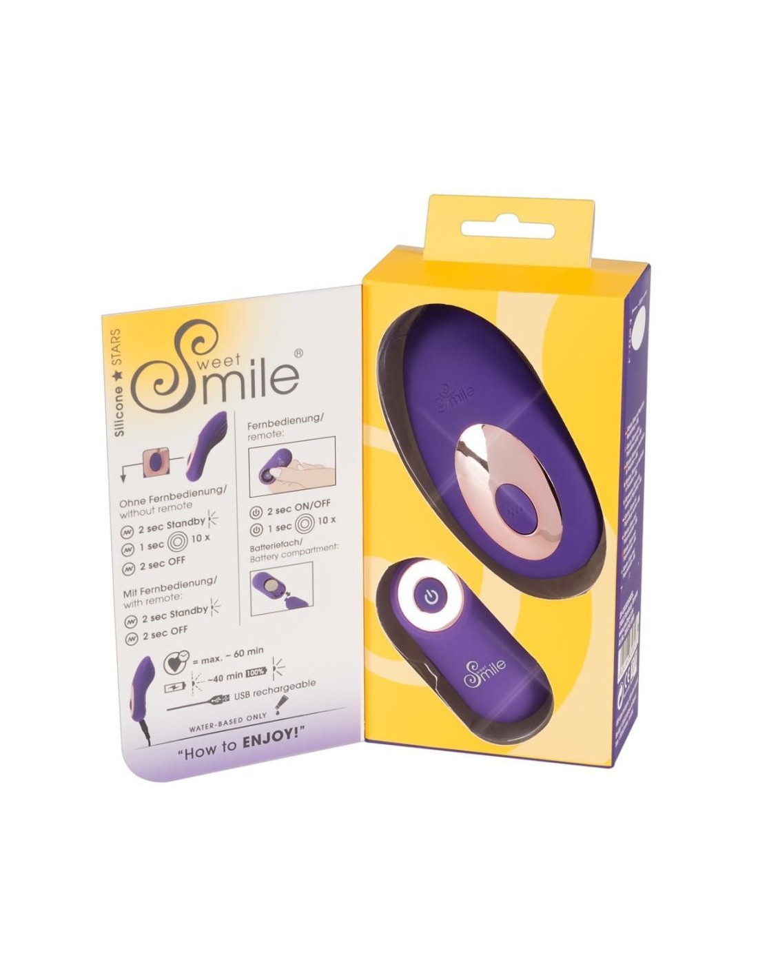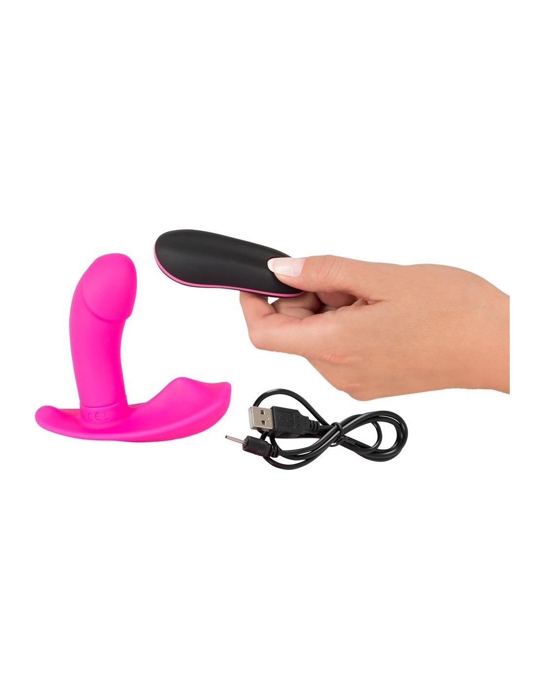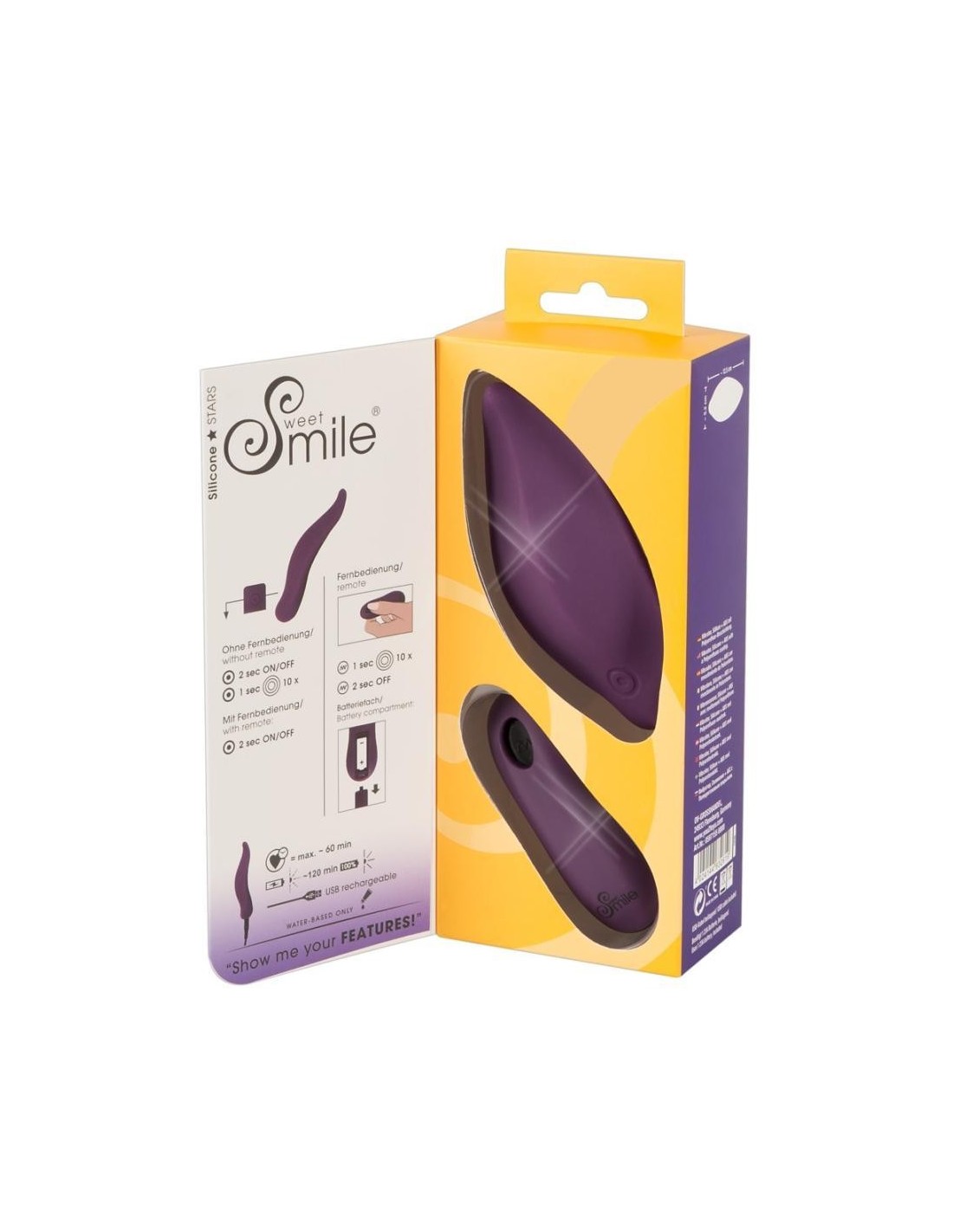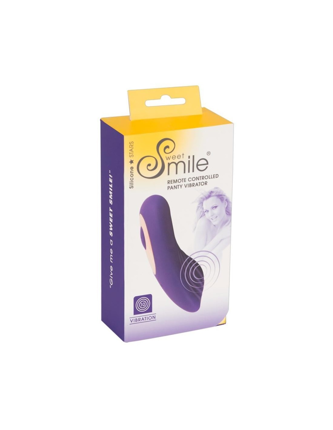 Questo vibratore RC Panty di Sweet Smile è un piacere femminile veramente potente! Con la sua forma anatomica ideale, abbraccia letteralmente la vulva e stimola ampiamente il clitoride e la vagina con le sue 10 eccitanti modalità di vibrazione e scanalature di stimolazione. La sua forma permette di indossarlo in mutandine, mentre il telecomando facilita il funzionamento a mani libere e incoraggia il gioco eccitante in pubblico con il controllo dato al partner - anche in ambienti umidi, in quanto è impermeabile.