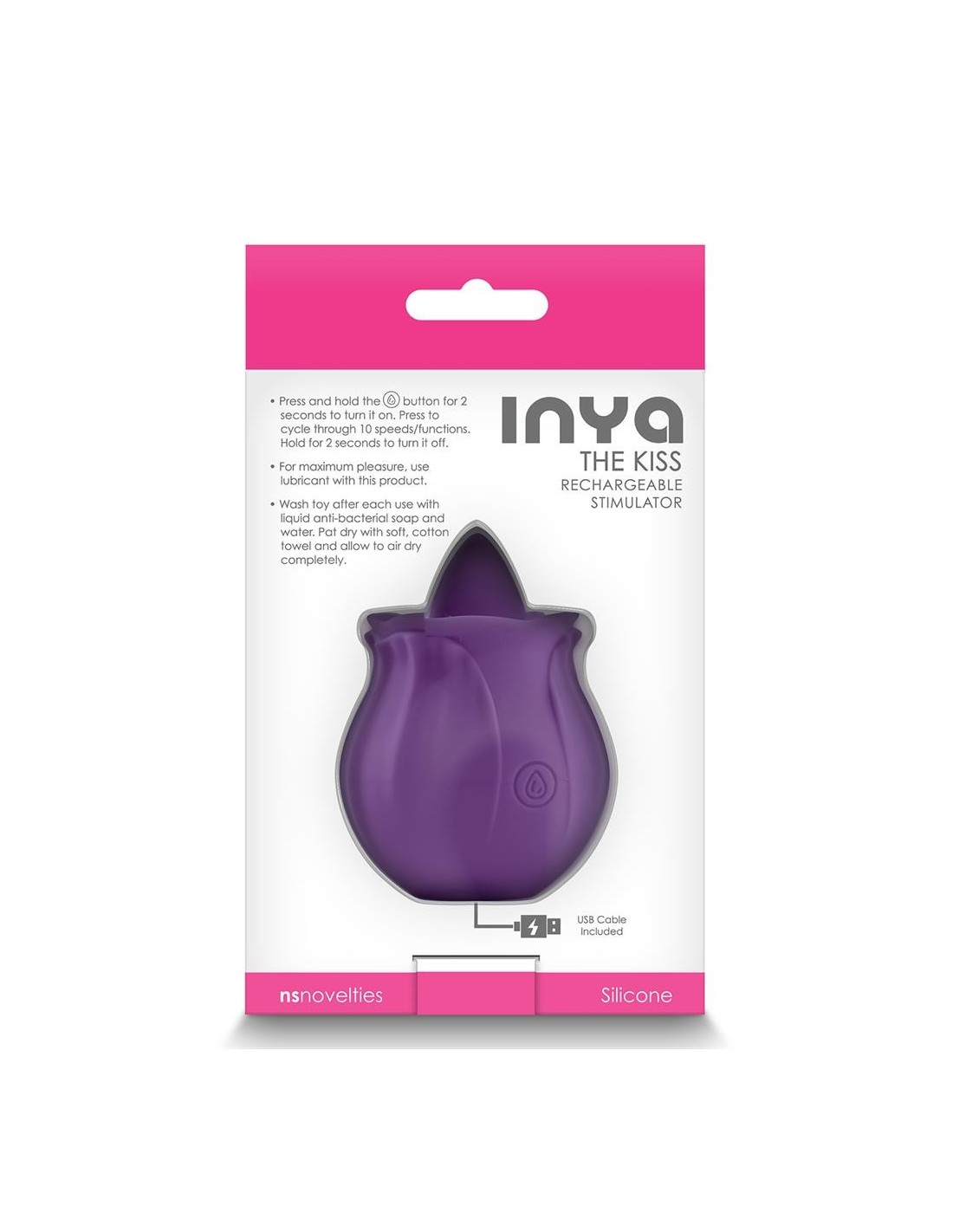 Kiss by INYA. Beautifully crafted in an eye-catching rosebud design, the Kiss stimulates the clitoris with rapid tongue vibrations for an intense climax. Made of soft silicone, it is rechargeable and travel friendly.