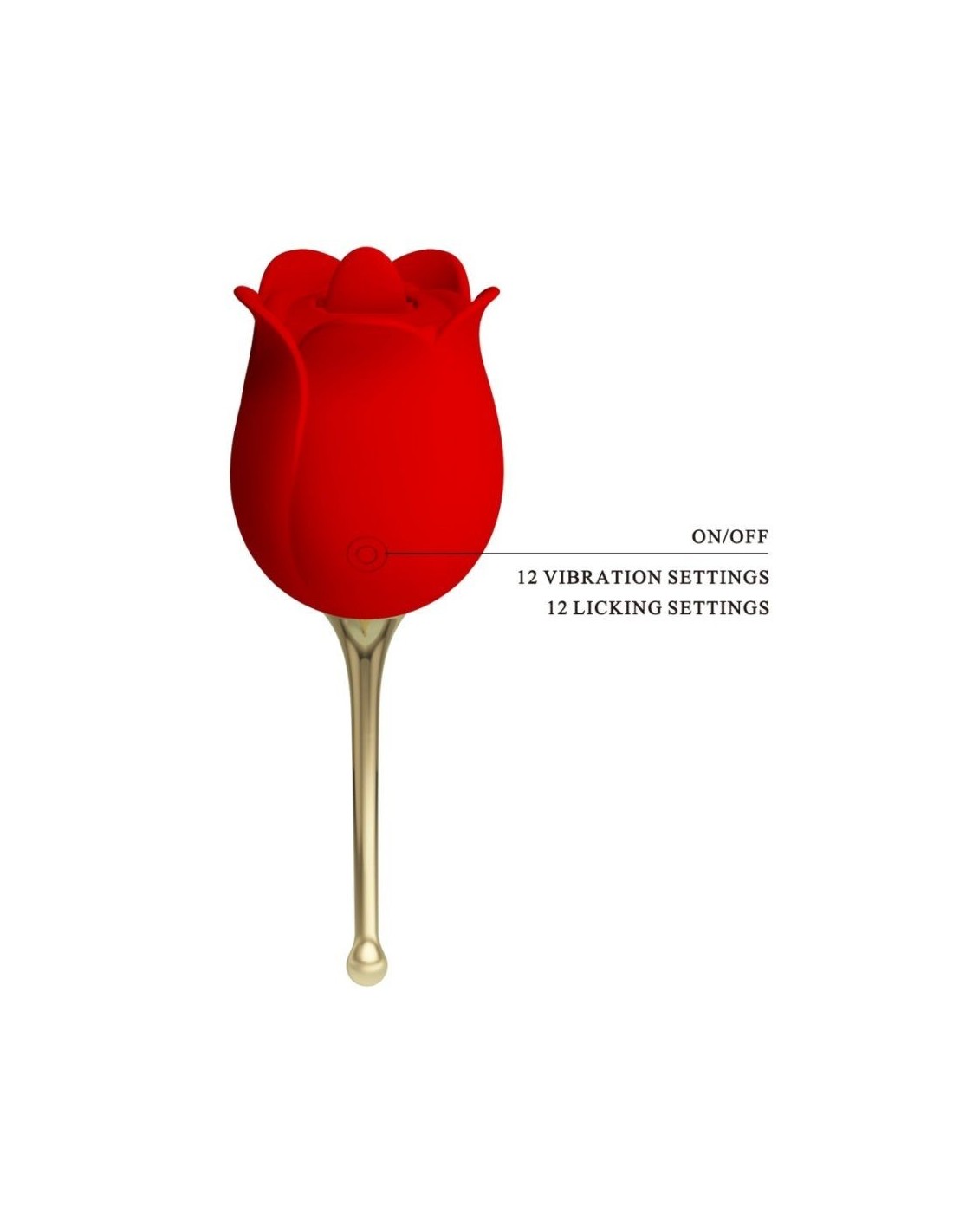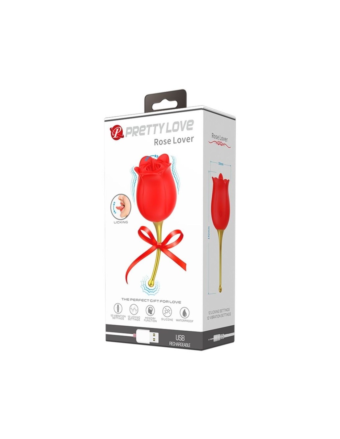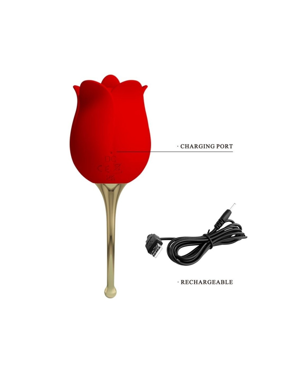 Pretty Love Rose Lover Il vibratore rosa che lecca tramite la lingua posta all'estremtà èun prodotto intimo femminile che può stimolare le parti intime fino all'orgasmo. A forma di rosa realistica, questo vibratore può essere portato ovunque. Le graziose roselline ti permettono di provare in qualsiasi momento il massimo piacere del sesso orale, e che aiuta a raggiungere l'orgasmo in breve tempo. Tieni premuto il pulsante di accensione per 2 secondi per accenderlo, la luce rossa si accenderà, premi nuovamente il pulsante di accensione, puoi iniziare a goderti rispettivamente 12 forti frequenze di oscillazione e vibrazione. Il materiale in silicone sicuro e setoso, la ricarica USB, ti regalano un piacere intenso.
