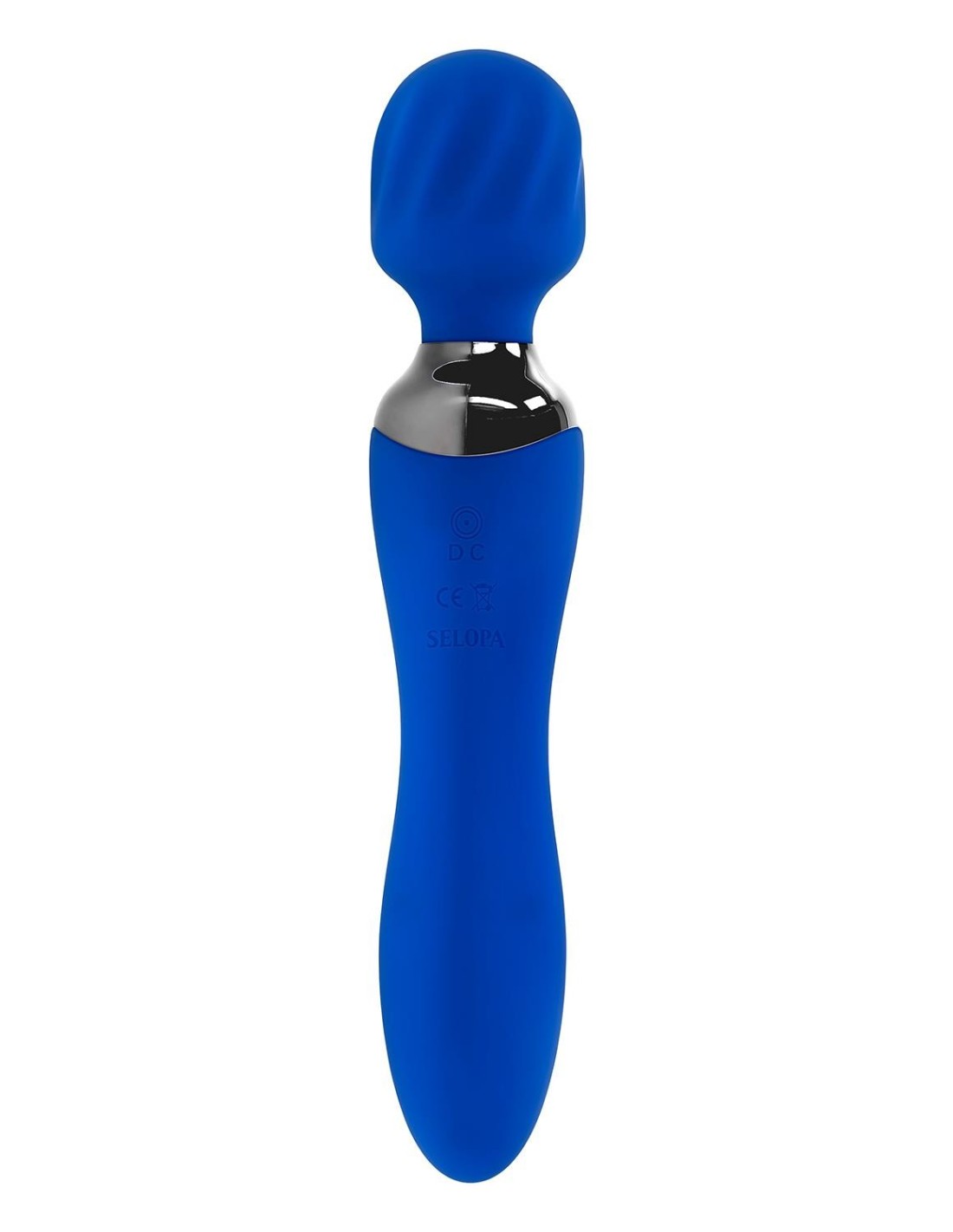 This stylish double-ended toy features a textured, flexible wand head on one end and a gently bulbed vibrator on the other, with two powerful motors controlled independently.