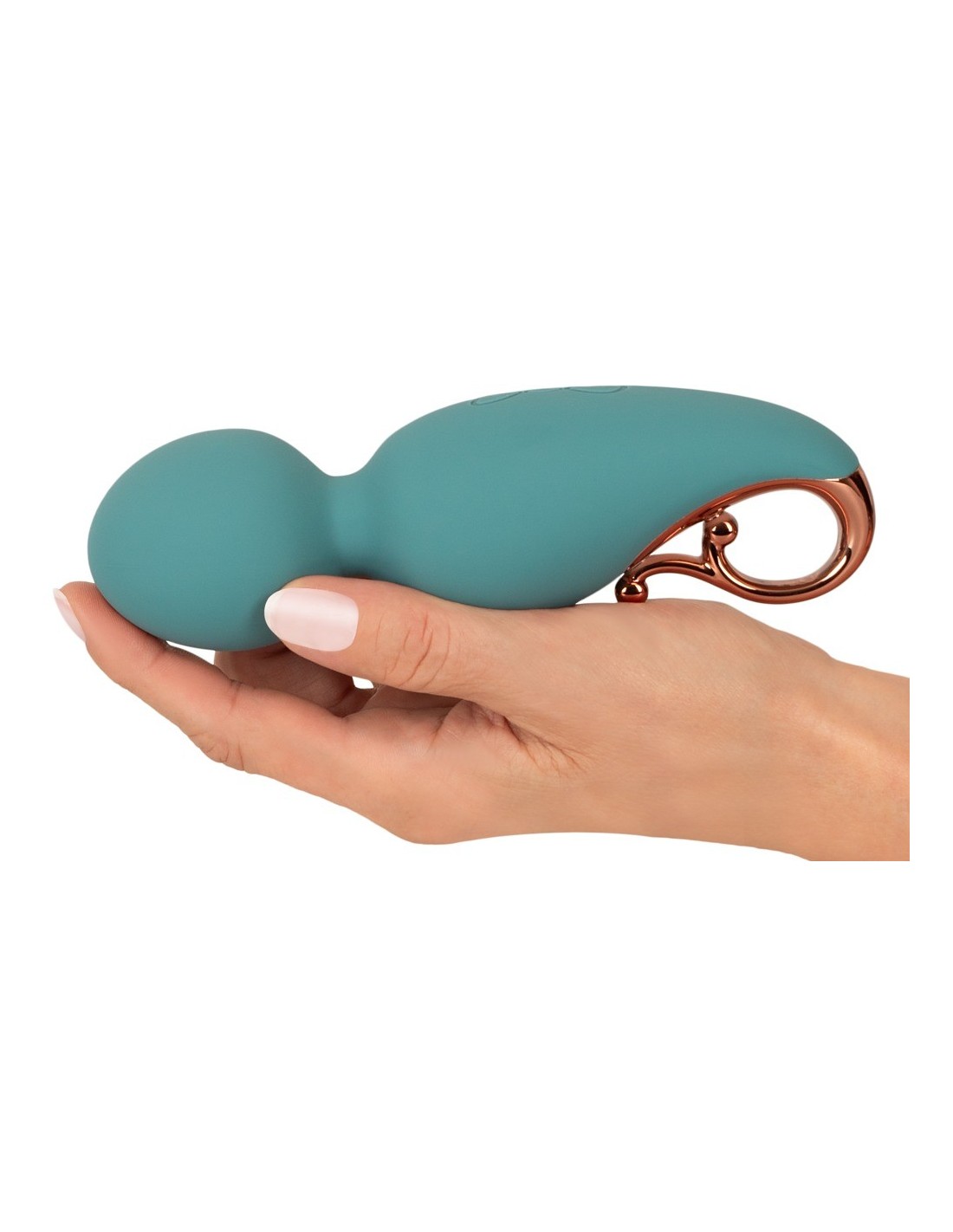 Il massaggiatore, piccolo e leggero, è facile da tenere in mano e da guidare grazie all'impugnatura ad anello elegantemente ricurva. Un motore potente e silenzioso con 16 modalità di vibrazione offre un piacere discreto e molto vario. Le modalità possono essere facilmente regolate con la semplice pressione di un pulsante. Le vibrazioni sono particolarmente forti nella testa e appena percettibili nell'impugnatura.