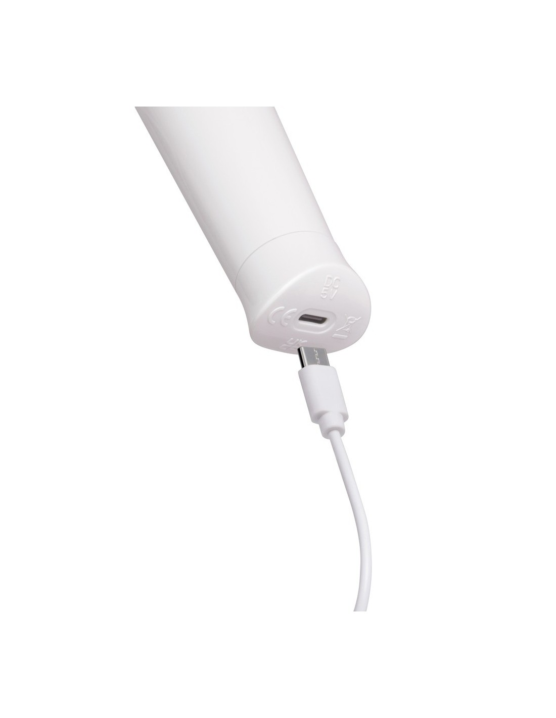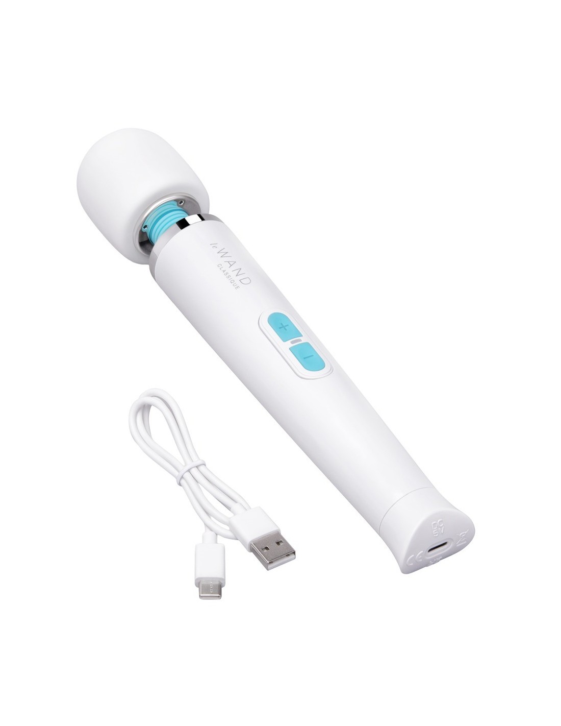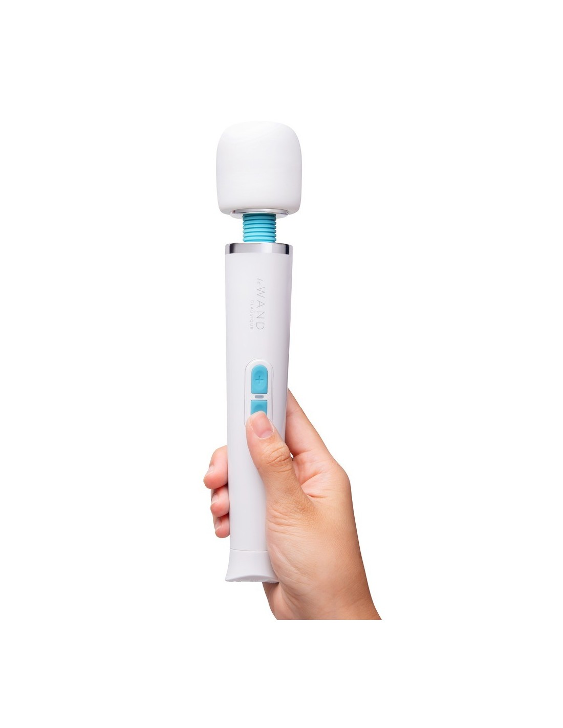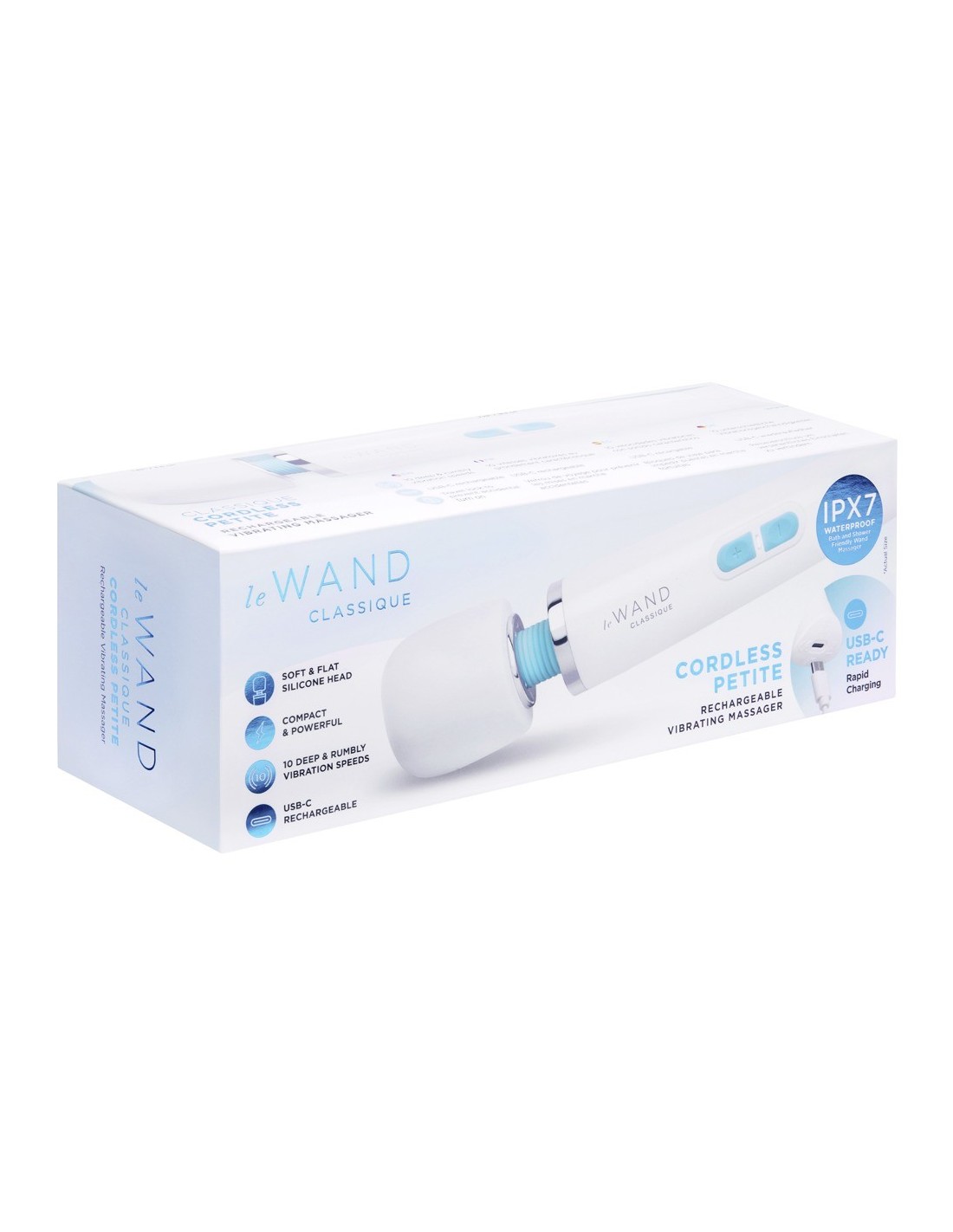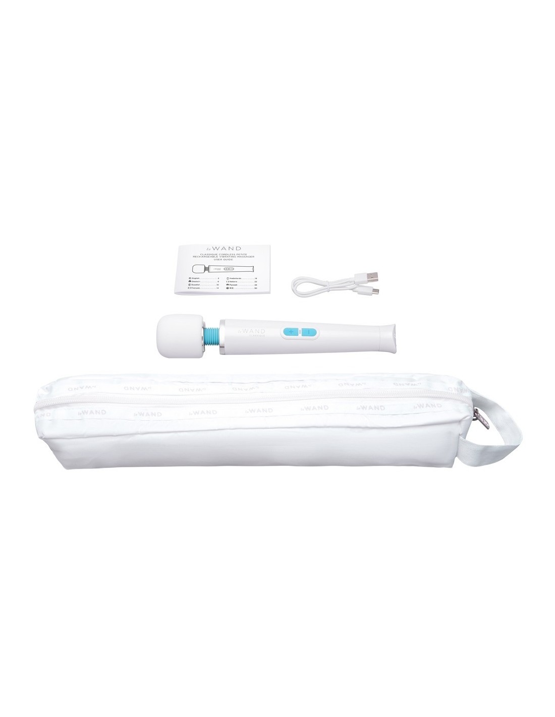 Bacchetta da massaggio di lusso ricaricabile Classique Cordless Petite di le WAND con vibrazioni extra potenti (max. 6.500 giri al minuto) per massaggi intensivi da soli e in coppia. Classique in un luminoso e fresco colore bianco e con un design ergonomico a parete. La bacchetta da massaggio, leggera e compatta, sta perfettamente in mano durante le coccole. Il lungo manico e la testina mobile consentono di raggiungere facilmente tutte le parti del corpo e i punti di piacere esterni. La testina di massaggio, con la sua texture vellutata e morbida al tatto, scivola sulla pelle come se fosse da sola e vi coccola con il massimo comfort.