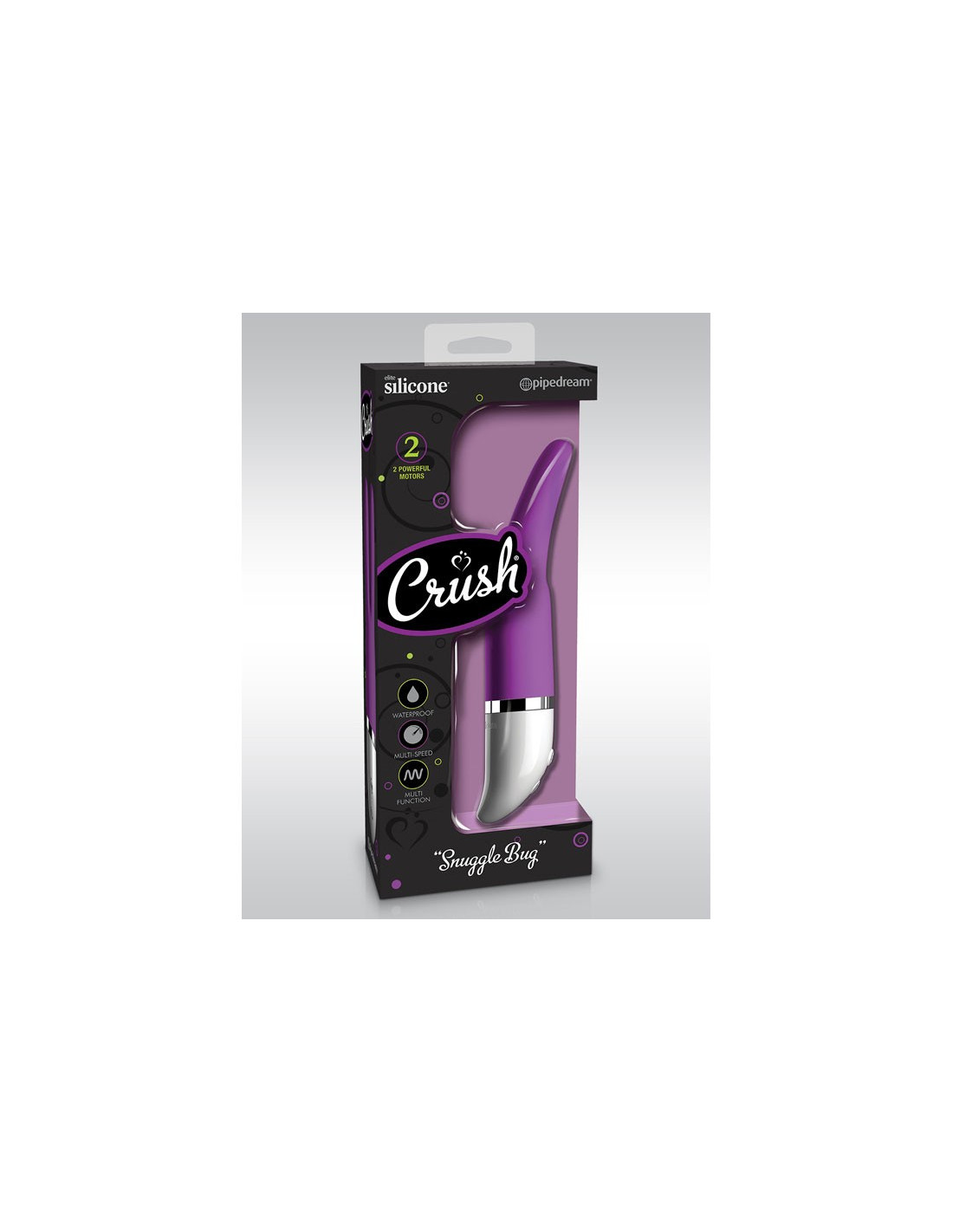 Snuggle Bug eroga una stimolazione incredibilmente piacevole, combinando vibrazioni intense ad un design discreto. Realizzato in Elite Silicone® e plastica ABS lucida, è impermeabile, liscio, sofisticato, e dispone di dieci potenti modelli di vibrazione. Il silicone vellutato è elegante e estremamente liscio sulla vostra pelle e i due motori potentissimi producono vibrazioni intense. Ogni "antenna" flessibile è alimentata internamente per vibrazioni ultra-potenti. Questo permette a Snuggle Bug di fornire stimoli per entrambi i lati del clitoride simultaneamente. Scegliete un modello di pulsazione premendo l'icona a forma di onda sulla base per passare da un fremito di un palpito ad una intensa vibrazione in pochi secondi! Per disattivare, premere il pulsante di accensione per tre secondi. Utilizzate una lozione per il corpo per sensazioni più emozionanti! Caratteristiche tecniche: - Lunghezza inseribile: 5 "(127 mm) - Modulo flessibile per Pleasure & Comfort - 10 potenti modelli di vibrazione - 100% impermeabile - Ultra-liscio, Corpo-Safe Elite Silicone® - Necessarie le Batterie: sì - batterie incluse: No - Tipo di batteria: 2x AA (non incluse) Dimensioni: 29,90 x 11,50 x 5,80 cm Peso: 230 grammi