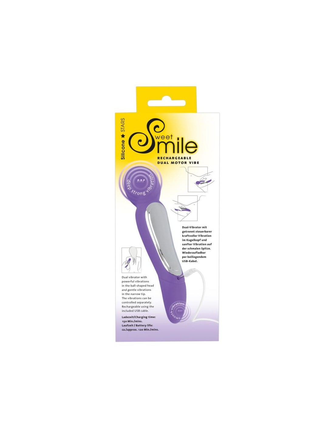 Questo setoso vibratore Dual Motor di Sweet Smile, specialista del piacere, vuole essere scoperto e colpisce per il suo utilizzo su due lati! Un'estremità con una testa di massaggio piatta e allargata, l'altra stretta e affusolata per massaggi puntuali e inserimento vaginale/anale. Ogni estremità è dotata di un potente motore per 10 modalità di vibrazione che possono essere controllate separatamente.
