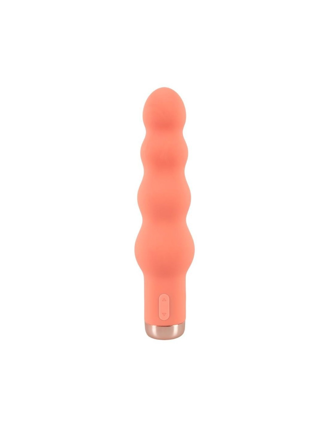 Mini vibratore di perline color pastello da Peachy! in uno stimolante e sottile design a sfera affusolata - entra in ogni tasca! 10 modalità di vibrazione assicurano un divertimento vario con variazioni di gioco vaginale e anale, così come la stimolazione di punti di piacere esterni e può essere comodamente controllato su e giù con il tocco di un pulsante. Il materiale in silicone di alta qualità con una consistenza morbida al tatto fornisce una sensazione di pelle molto piacevole durante il gioco e le coccole. Ricaricabile - cavo di ricarica USB incluso.