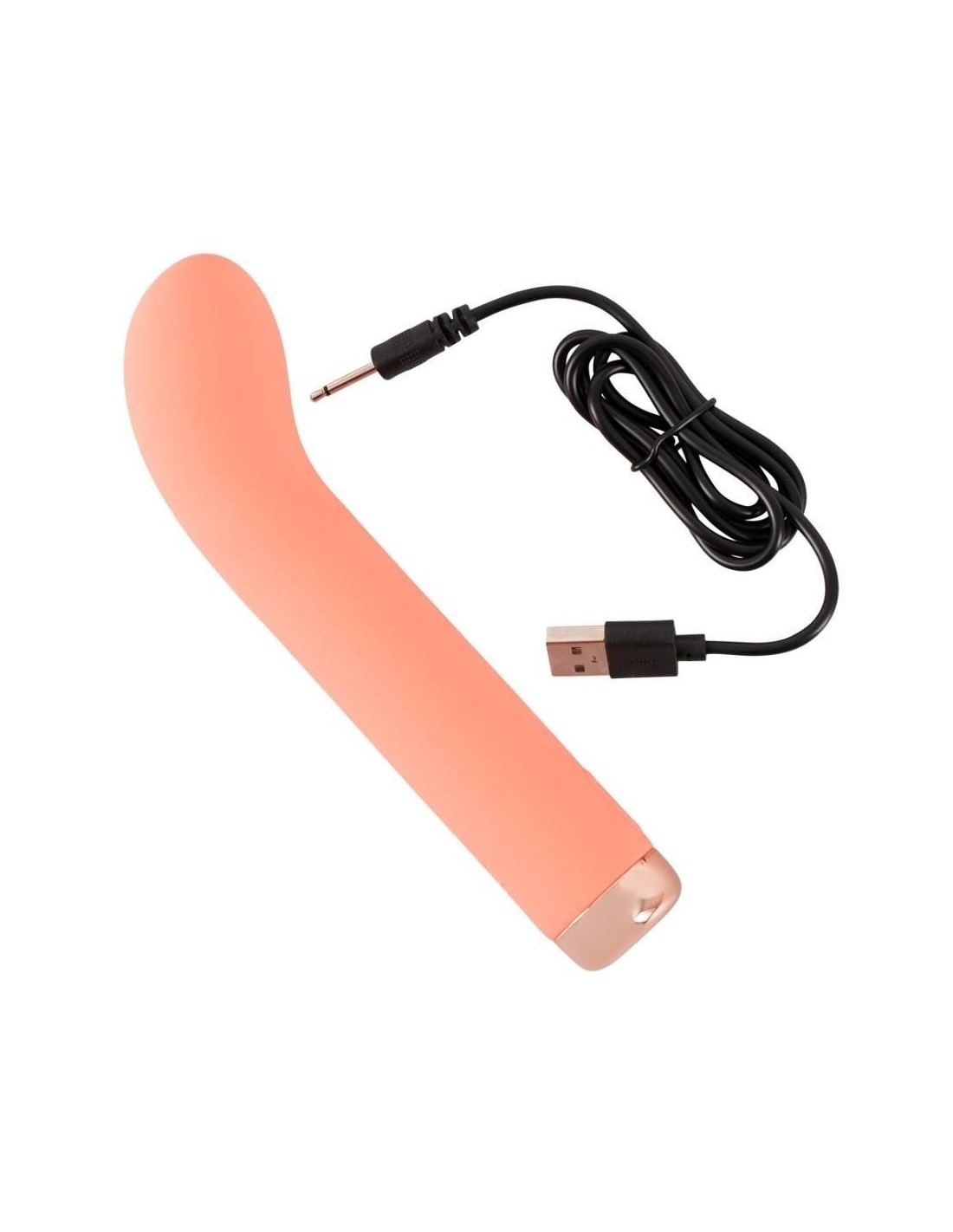 Mini vibratore per il punto G di peachy! dal colore pastello, con un design idealmente curvo e una testina rigonfia per una stimolazione mirata del punto G di lei o del punto P di lui. le 10 modalità di vibrazione offrono una varietà di divertimento per il gioco vaginale e anale e possono essere facilmente regolate verso l'alto e verso il basso con la semplice pressione di un pulsante. Il silicone di alta qualità con texture morbida al tatto assicura una sensazione molto piacevole sulla pelle durante il gioco e le coccole. Ricaricabile - cavo di ricarica USB incluso.