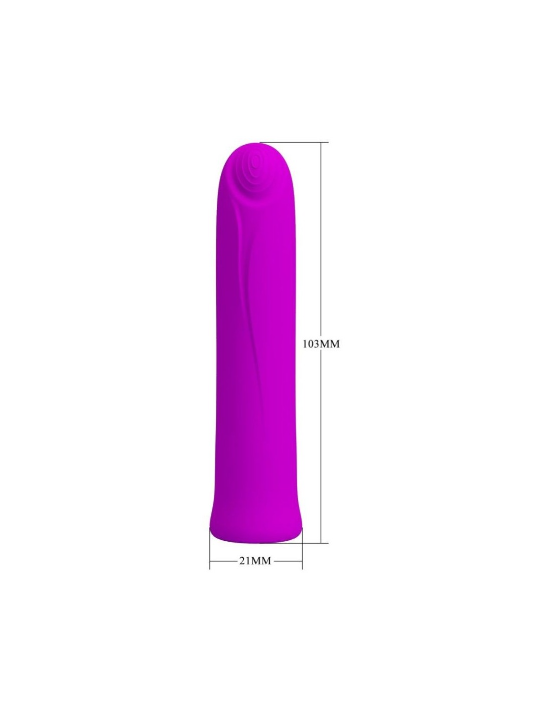 Questo mini vibratore ha un design meraviglioso e un motivo a cerchi concentrici pronunciati e stimolanti, e si adatta discretamente a qualsiasi borsa. Le 12 modalita' di vibrazione offrono molta varieta' durante il divertimento intimo. Le modalita' di vibrazione possono anche essere facilmente controllate premendo un pulsante. Il vibratore ricorda l'ultima modalita' di vibrazione utilizzata prima di spegnersi, grazie alla sua intelligente funzione di memoria, e si riavvia su questa modalita' di vibrazione quando viene riacceso. La consistenza vellutata e morbida al tatto e' fantastica sulla pelle durante la stimolazione e il piacere. Puo' essere ricaricato con il cavo USB incluso.