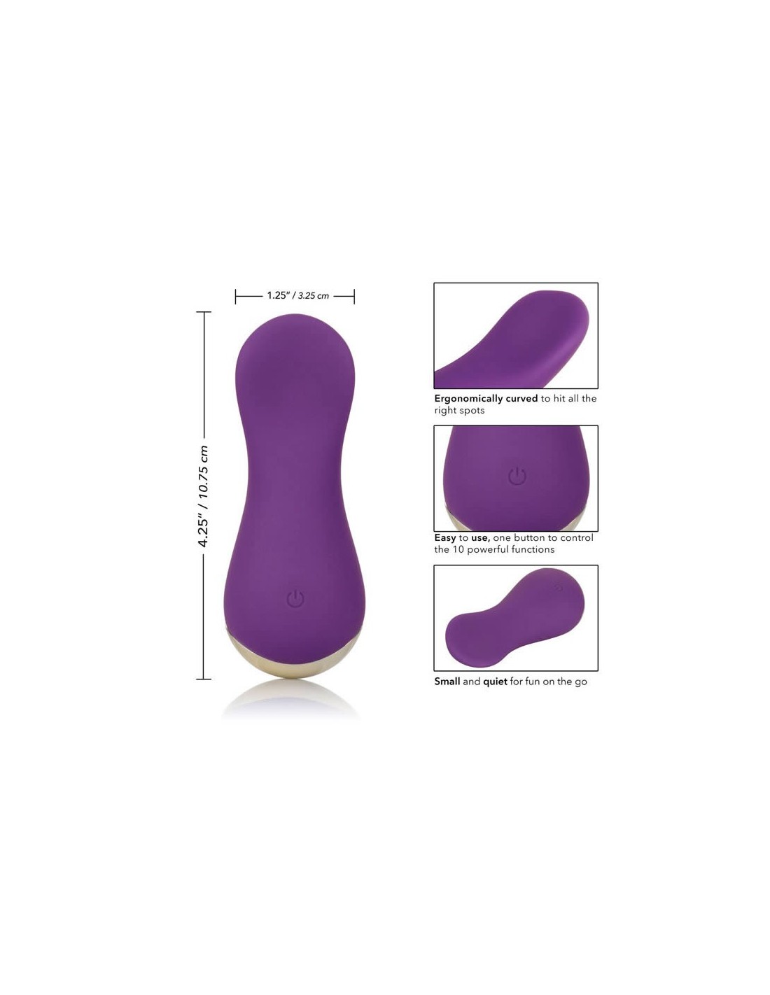 Fai scivolare lo Slay™ Lover tra le dita per sensazioni stimolanti nei tuoi punti di piacere preferiti. Il mini massaggiatore curvo si adatta tra le dita per consentirvi di offrire una tantalizzazione mirata e un brivido con vibrazioni flessibili. Divertiti con le 10 vibrazioni, le pulsazioni e le funzioni di escalation con il pulsante di controllo easy-touch. Il silicone ultra setoso e la testa ampia e flessibile sono perfetti per esplorare con facilità i punti sensuali e i punti di piacere intimo. Controlla senza sforzo il puro piacere con un pulsante in silicone easy-touch, tieni premuto per 3 secondi per accendere o spegnere. Usa il semplice controllo a pulsante per goderti fino a 1,5 ore di piacere. Ricarica in sole 2,5 ore collegando il cavo USB fornito alla porta di ricarica autosigillante sul retro del massaggiatore. Il sottile e discreto massaggiatore da 4 pollici lo rende il compagno di viaggio perfetto, abbraccia il piacere irradiante ovunque le tue fantasie ti portino. Diametro O̸ 1,25 pollici - 3,25 cm Lunghezza totale 4,25 inch - 10,75 cm Label: Slay Modalità di vibrazione: 10 Impermeabile: sì Bodysafe: Sì USB Materiale: silicone / plastica ABS