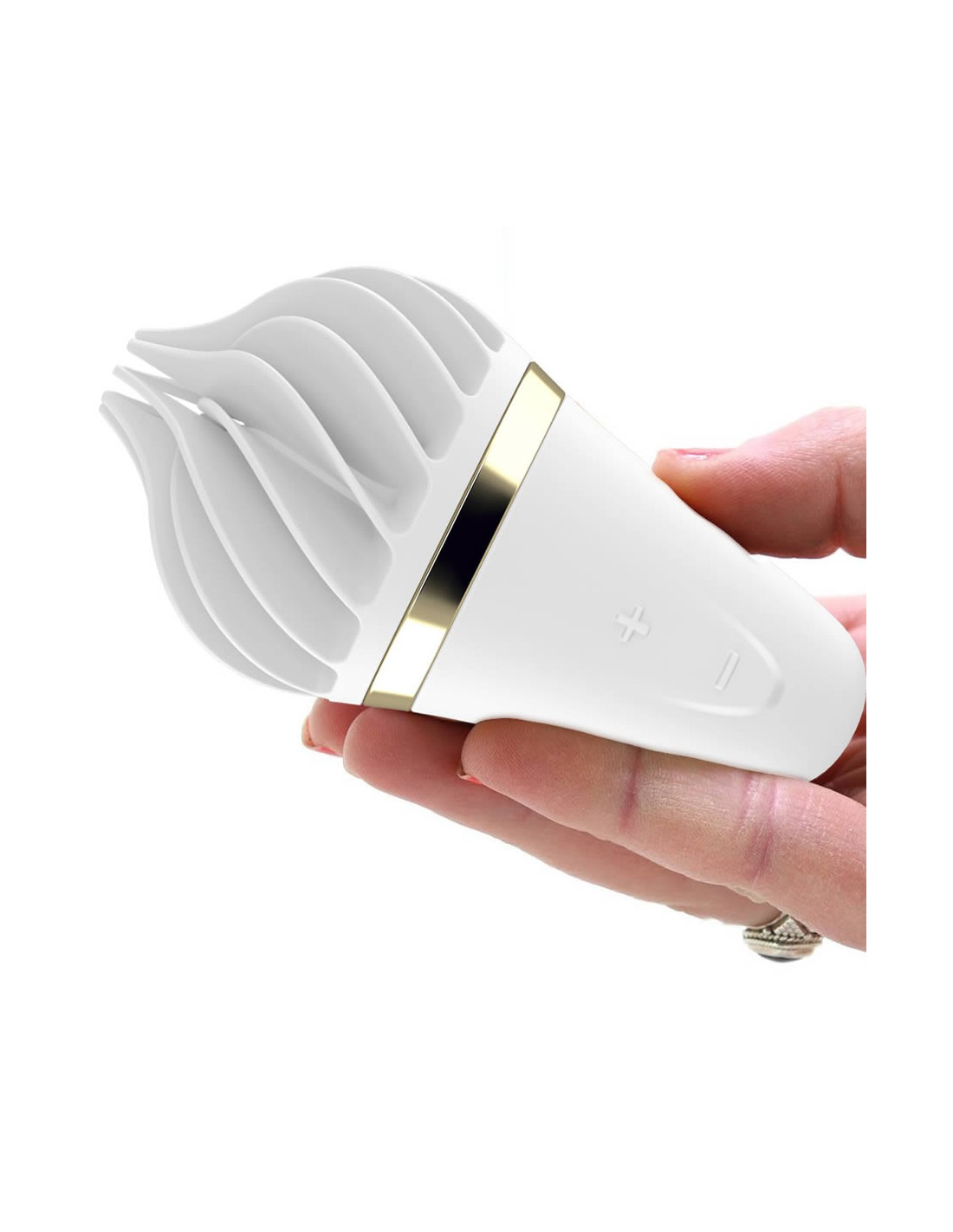 La punta sferica del caldo wafer è composta da delicate lamelle appuntite dall’ innocente colore bianco, che avvolgono con bramosia il tuo clitoride e con la rotazione che solletica ti portano senza indugio all’acme. L’impugnatura pratica garantisce una sicura manipolazione. I 10 programmi articolati comprendono 4 ritmi di rotazione, ciascuno con 3 velocità verso sinistra a verso destra, regolabili a piacere mediante i tasti +/-.