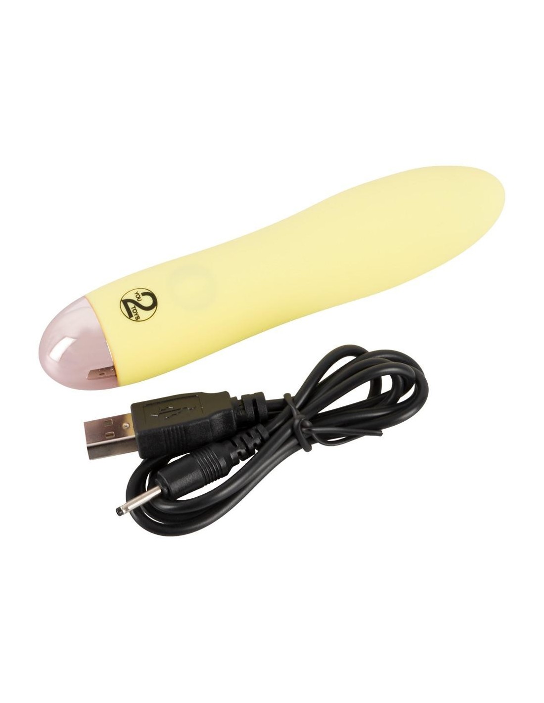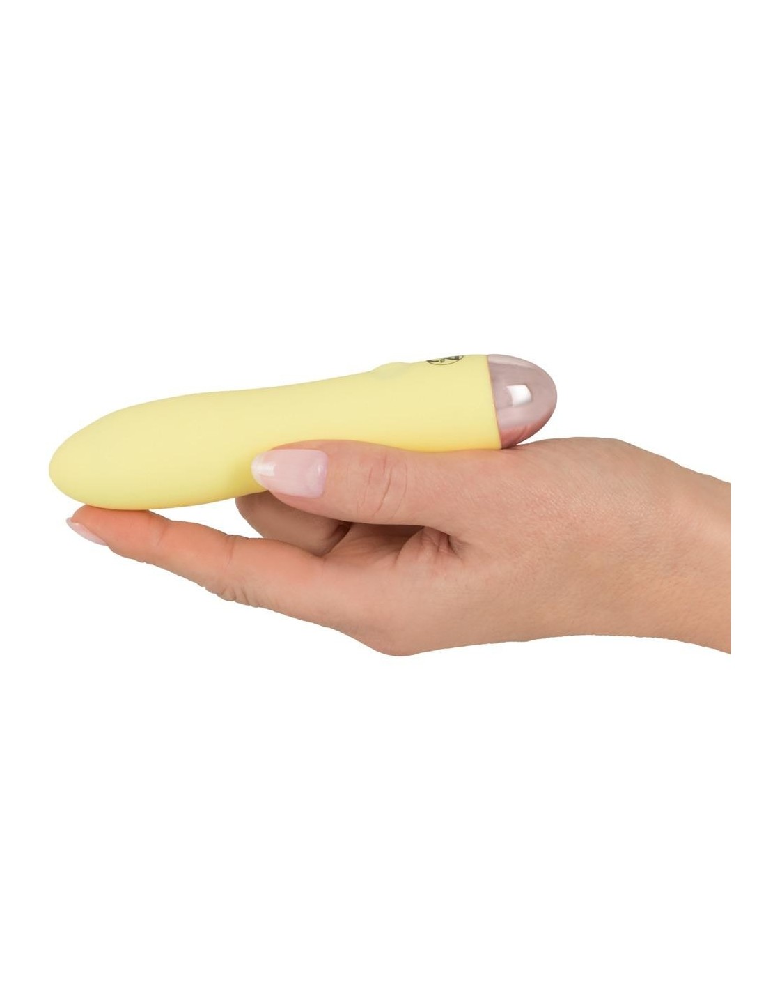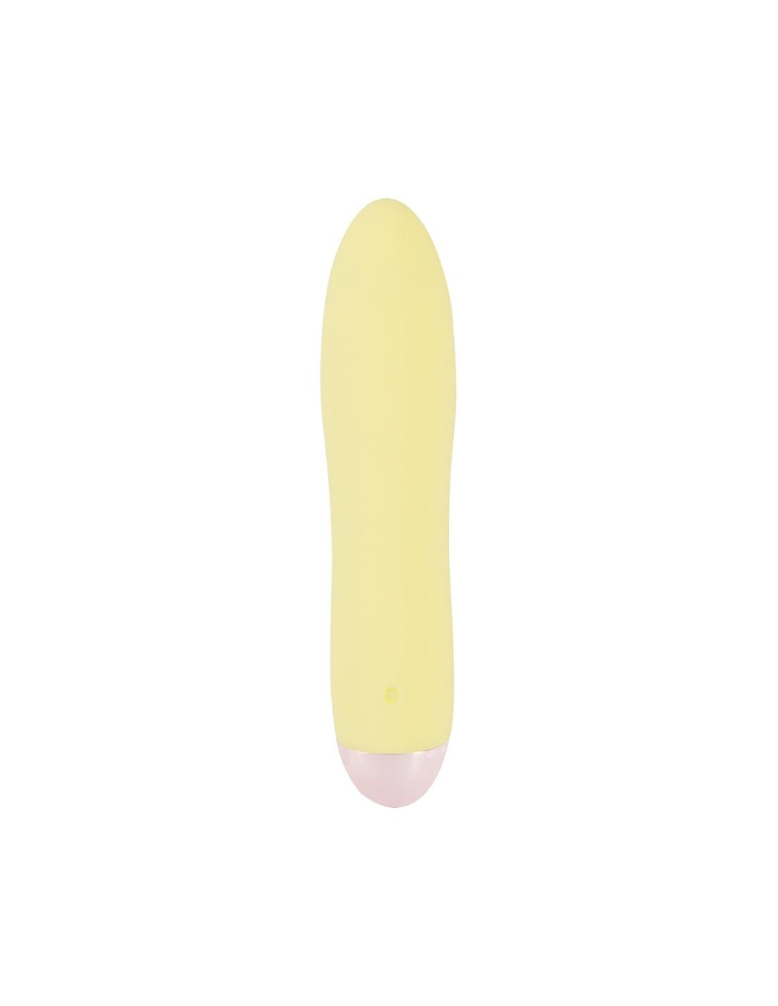 Mini vibratore giallo dal design sottile. Con 7 diverse modalità di vibrazione e ricaricabile con il cavo di ricarica USB incluso. Facile da usare e dal design elegante. Impermeabile.