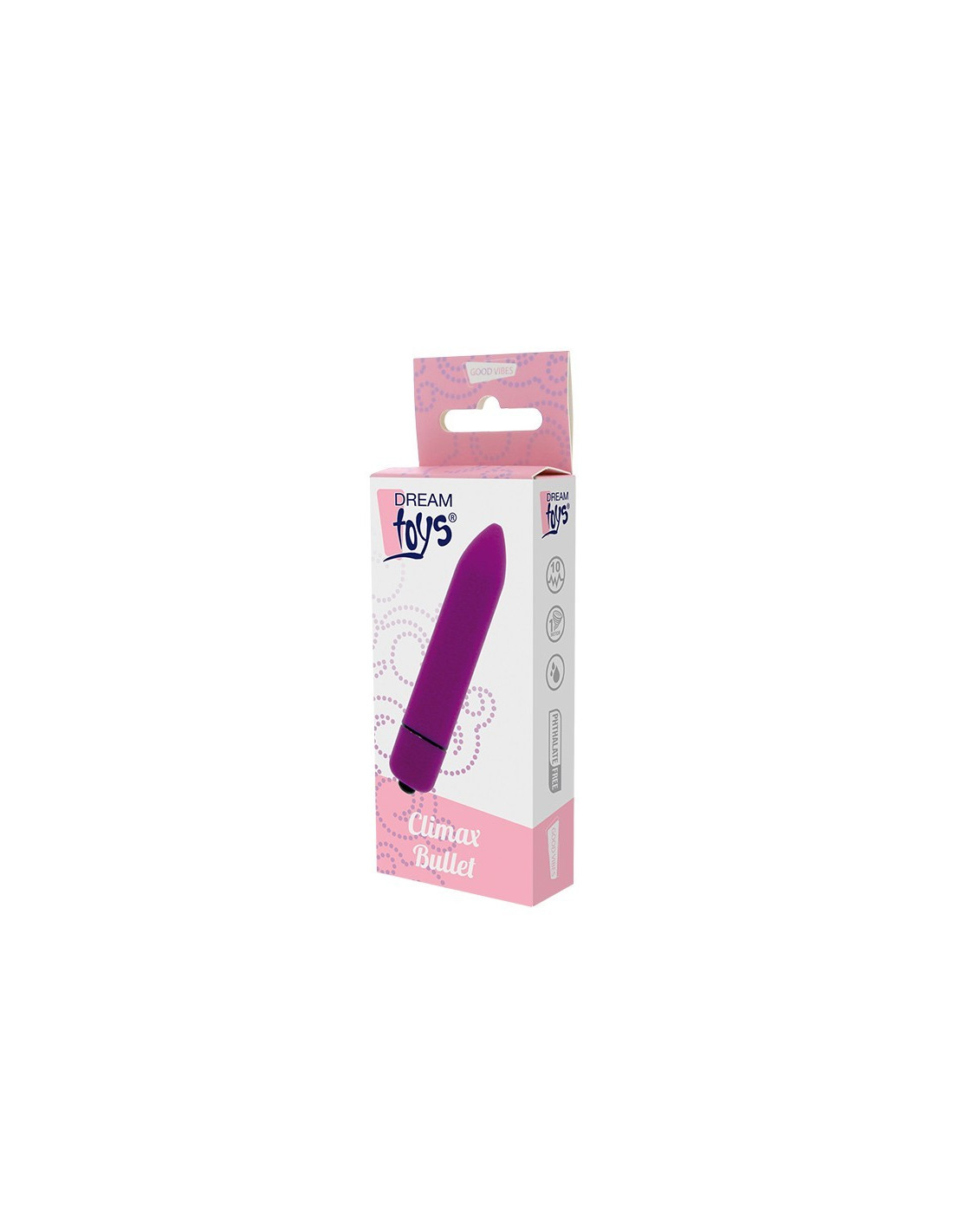 The Climax Bullet is a pocket size bullet vibrator with a powerful motor and 10 functions. The bullet has a smooth surface and a round tip for pin point stimulation. It is made of phthalate free ABS and can easily be operated with one button.