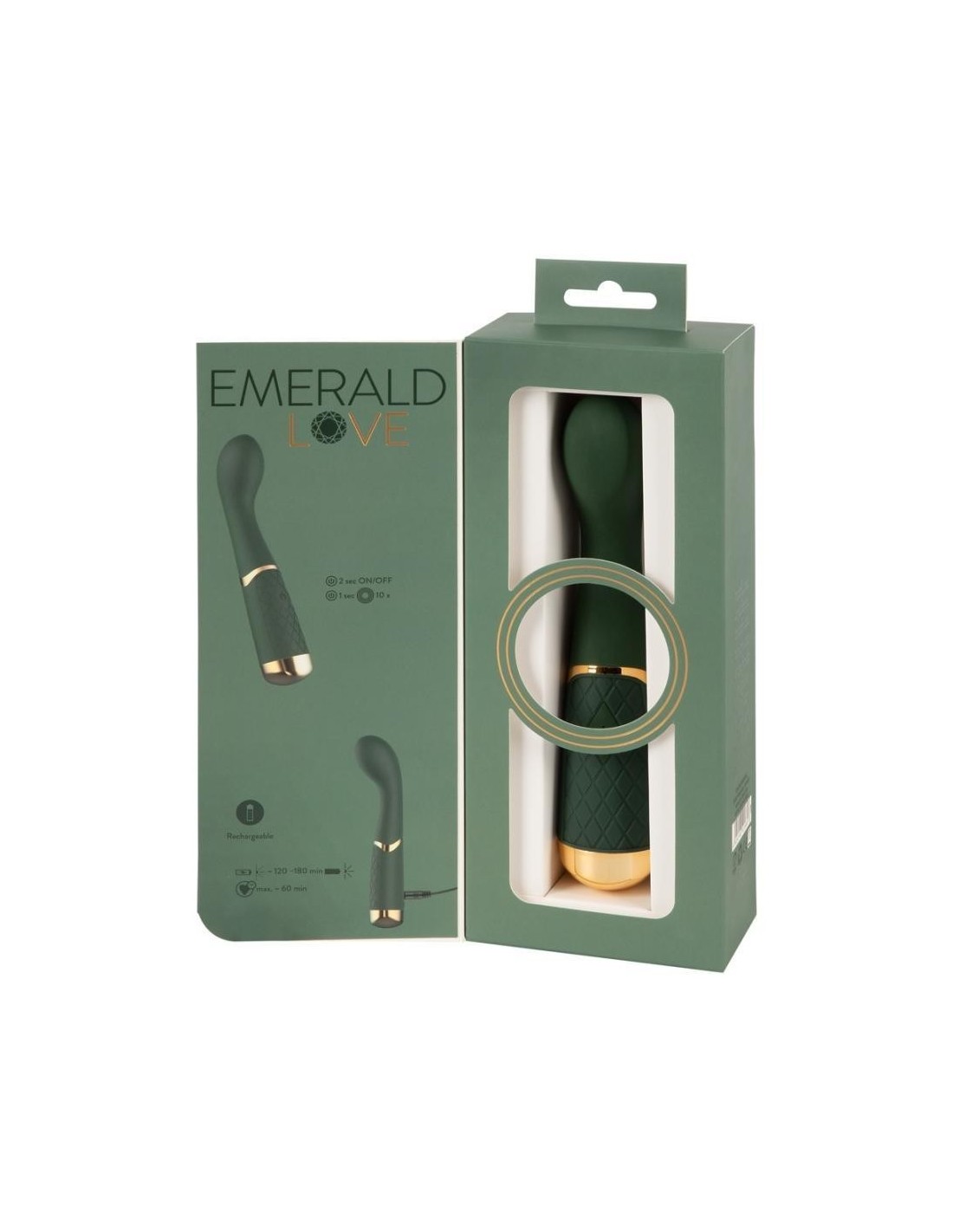 Vibratore perfettamente curvo Lussuoso massaggiatore G-Spot di Emerald Love con testa di massaggio mobile e pronunciata per una stimolazione precisa del tuo punto G. Può anche essere usato per stimolare il suo punto P. 10 modalità di vibrazione forniscono un sacco di varietà - anche nella vasca da bagno o nella doccia, poiché è impermeabile. La texture vellutata e morbida al tatto offre una sensazione molto piacevole sulla pelle durante la stimolazione e le coccole. Ricaricabile - cavo di ricarica USB incluso.