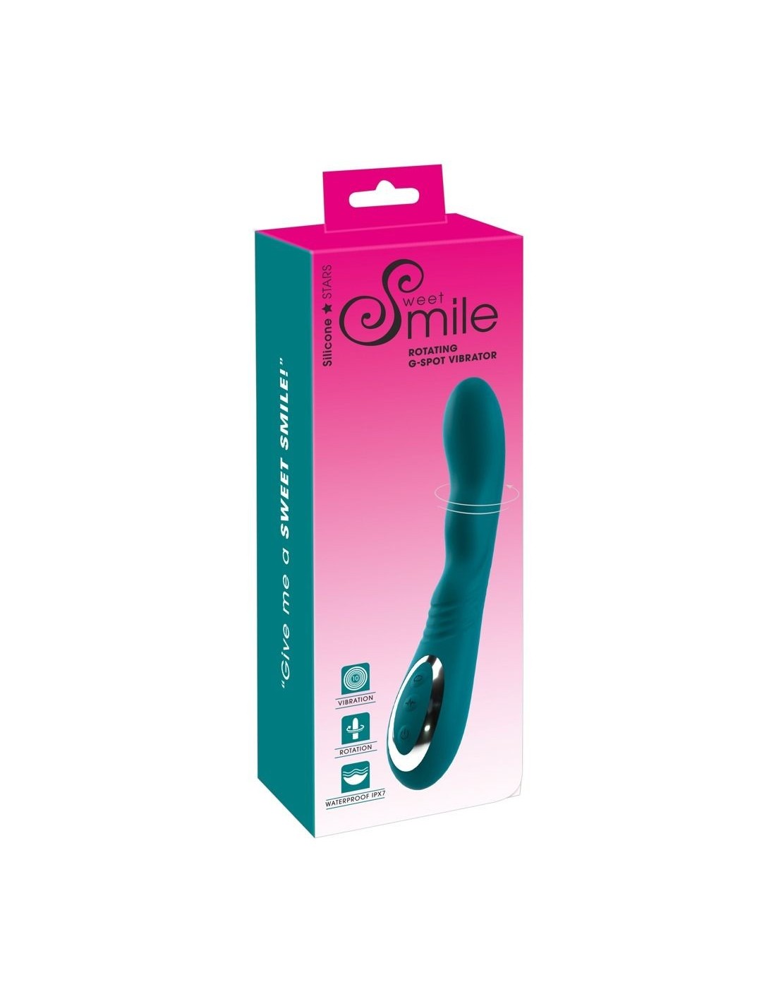 Vibratore rotante per il punto G di Sweet Smile, strutturato in modo ideale e ad alta intensità di stimolazione, con punta rotante che stimola in modo specifico la zona G durante il massaggio vaginale. Un potente motore fornisce l'intensa rotazione e le profonde vibrazioni che coccolano anche analmente e nei punti di piacere esterni.