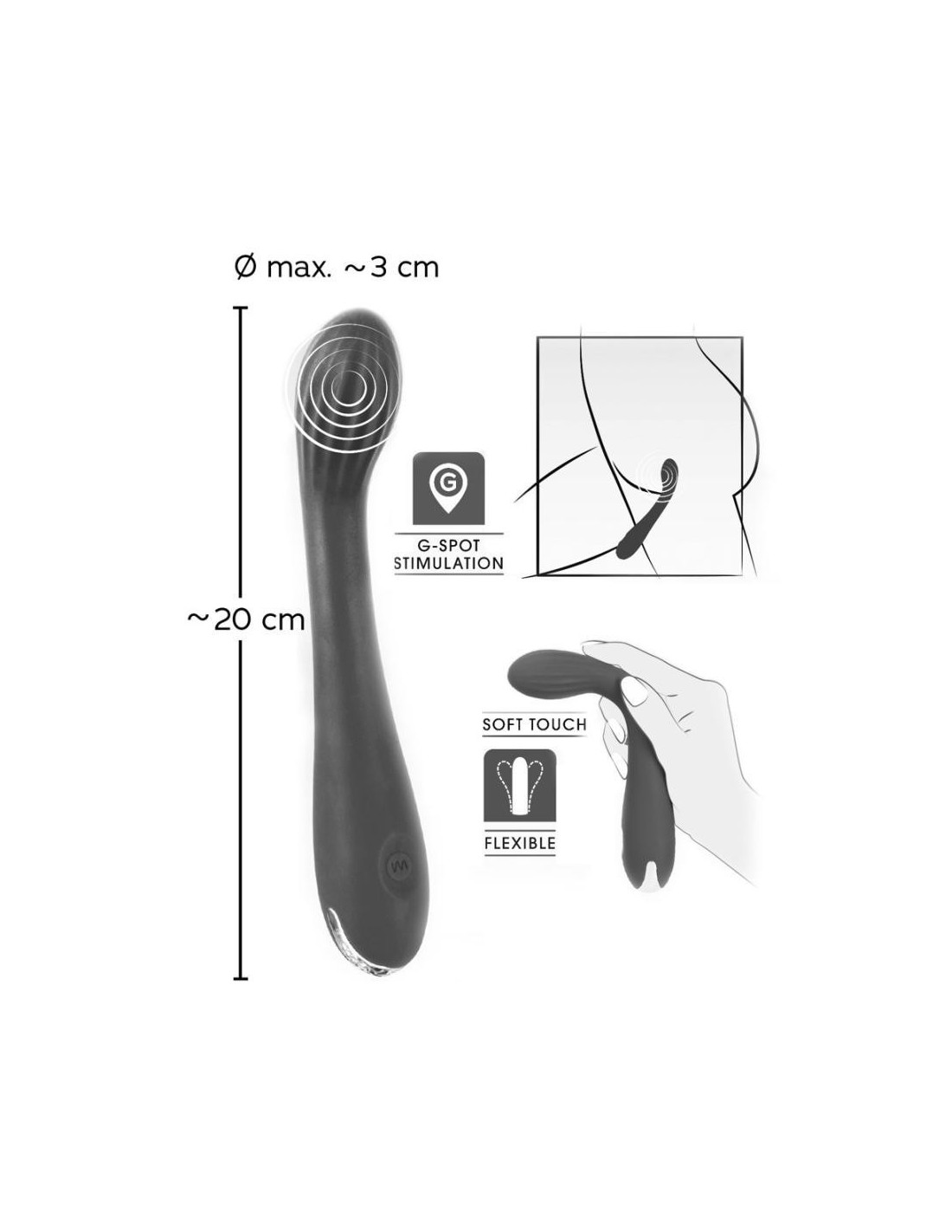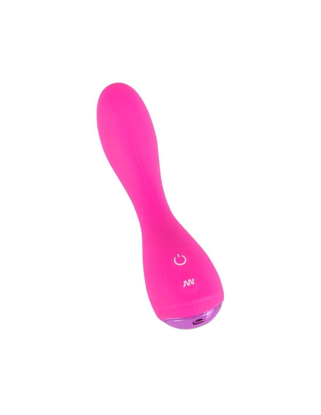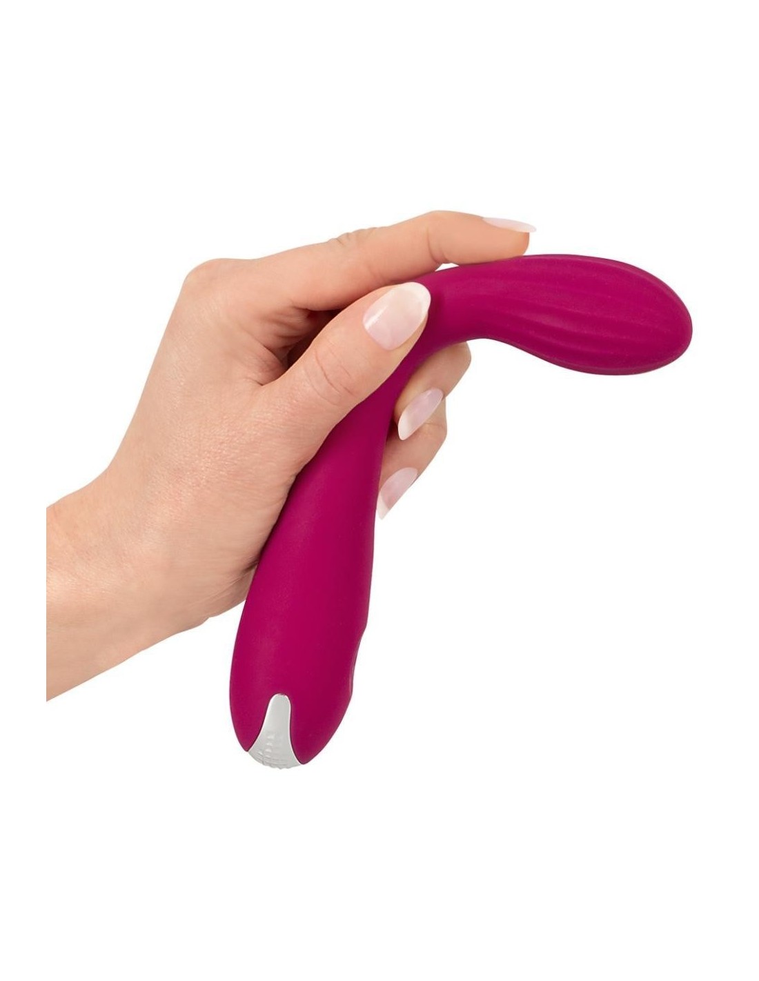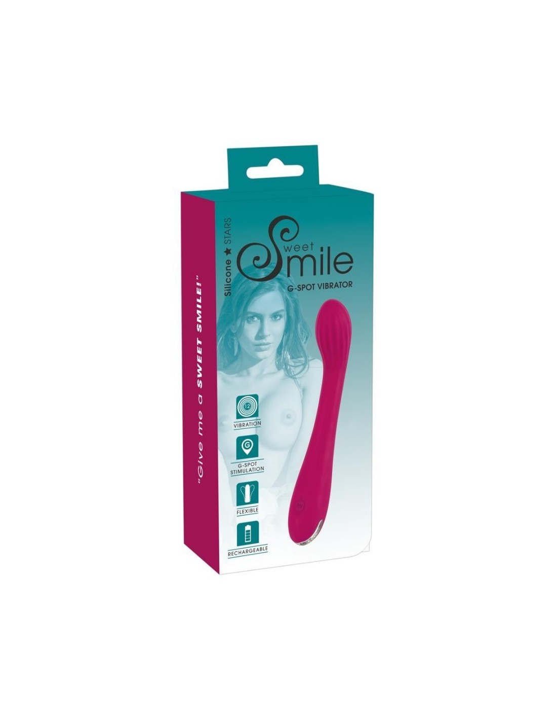 Vibratore per il punto G di Sweet Smile, ottimamente curvato, con collo flessibile e testa paffuta per la stimolazione precisa del tuo punto G vaginale. Può anche essere usato per stimolare il punto P anale. Un totale di 12 modalità di vibrazione fornisce un sacco di varietà e può essere comodamente controllato direttamente sul giocattolo al tocco di un pulsante. Rivestito dappertutto con una texture morbida e setosa, il vibratore fornisce una sensazione molto piacevole sulla pelle e sul corpo durante il gioco e la stimolazione. Ricaricabile - cavo di ricarica USB incluso.