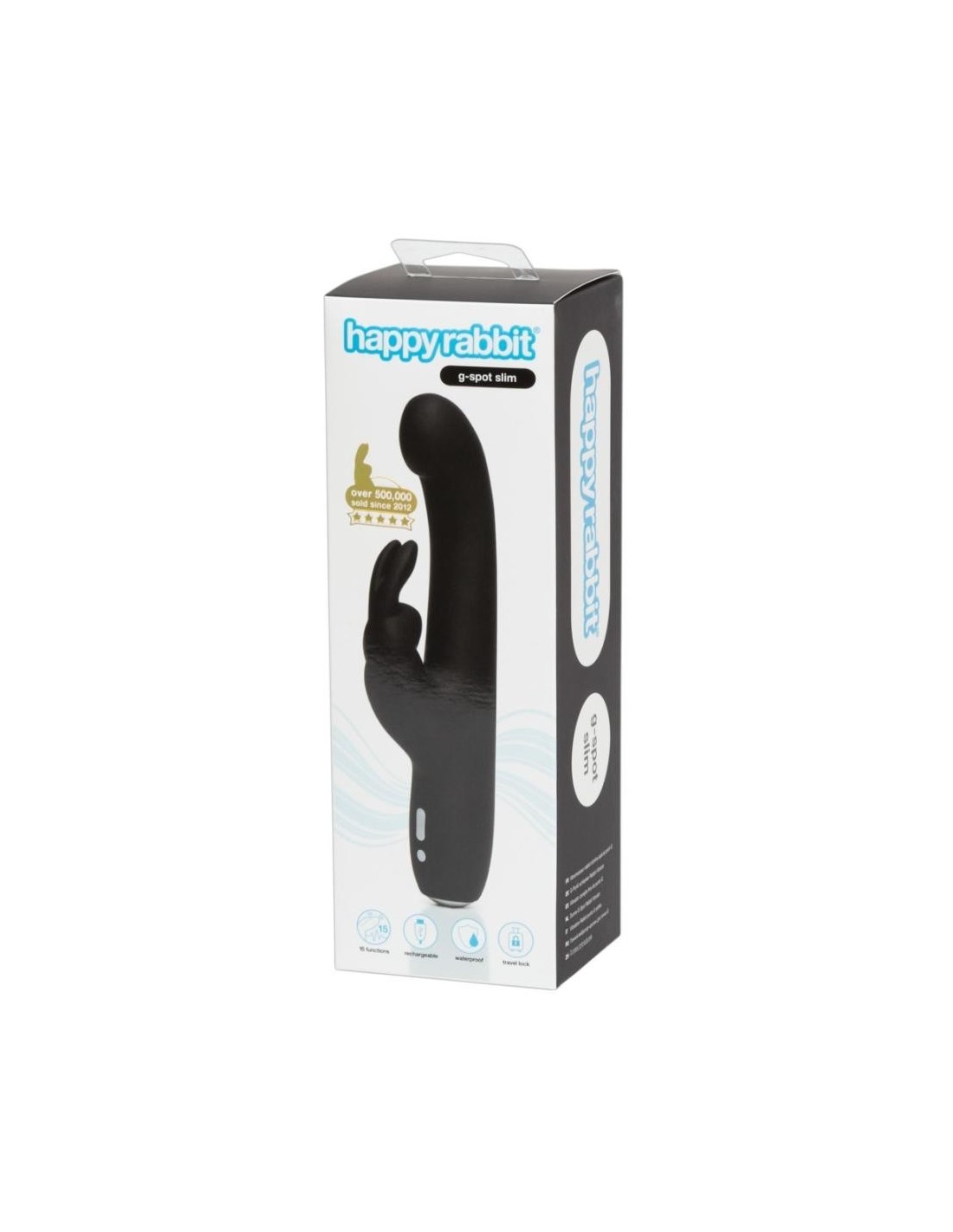 The black Happy Rabbit G-Spot Slim is a slim vibrator with a bulging vibrator head and 12 thrilling vibration modes. A special highlight is the additional bunny head: it has an additional motor so that it can stimulate the clitoris with its vibrating bunny ears – in 3 different speeds. The Happy Rabbit G-Spot Slim is made out of high-quality silicone with a soft PU coating. It is waterproof and has a convenient travel lock.