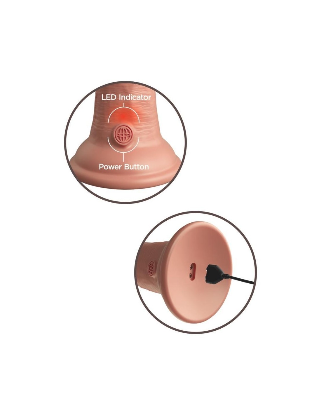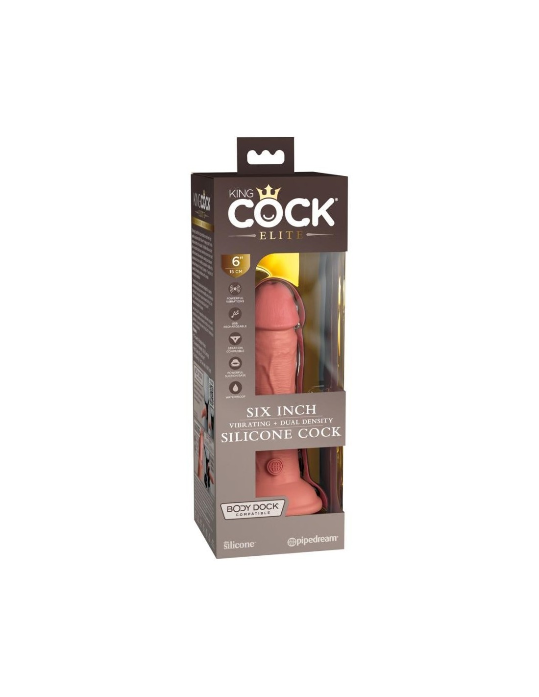 Vibratore naturale ricaricabile 6" vibrante + Dual Density Silicone Cock di King Cock Elite in look iper-realistico del pene fatto di materiale siliconico a doppia densità che si sente come la vera pelle. Il vibratore stesso (come un vero membro eretto) ha un'asta ferma, ma flessibile che rende l'esperienza di piacere il più realistica possibile.