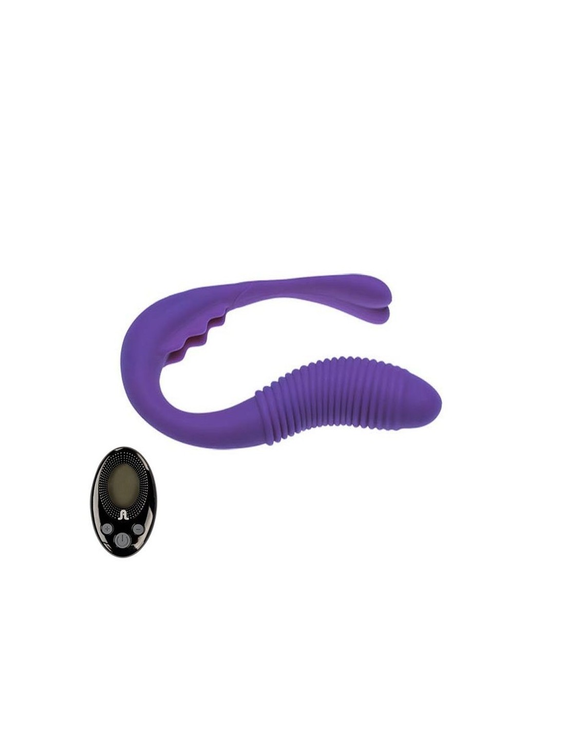 Doppio vibratore telecomandato per il clitoride e il punto G. Design ultra flessibile, che garantisce un adattamento perfetto all’anatomia femminile. Due motori per vibrazioni intense, con superficie texturizzata (ruvida) per potenziare le sensazioni. 100% silicone vellutato + ABS. Dieci livelli di vibrazione e dieci velocità. Due motori silenziosi.