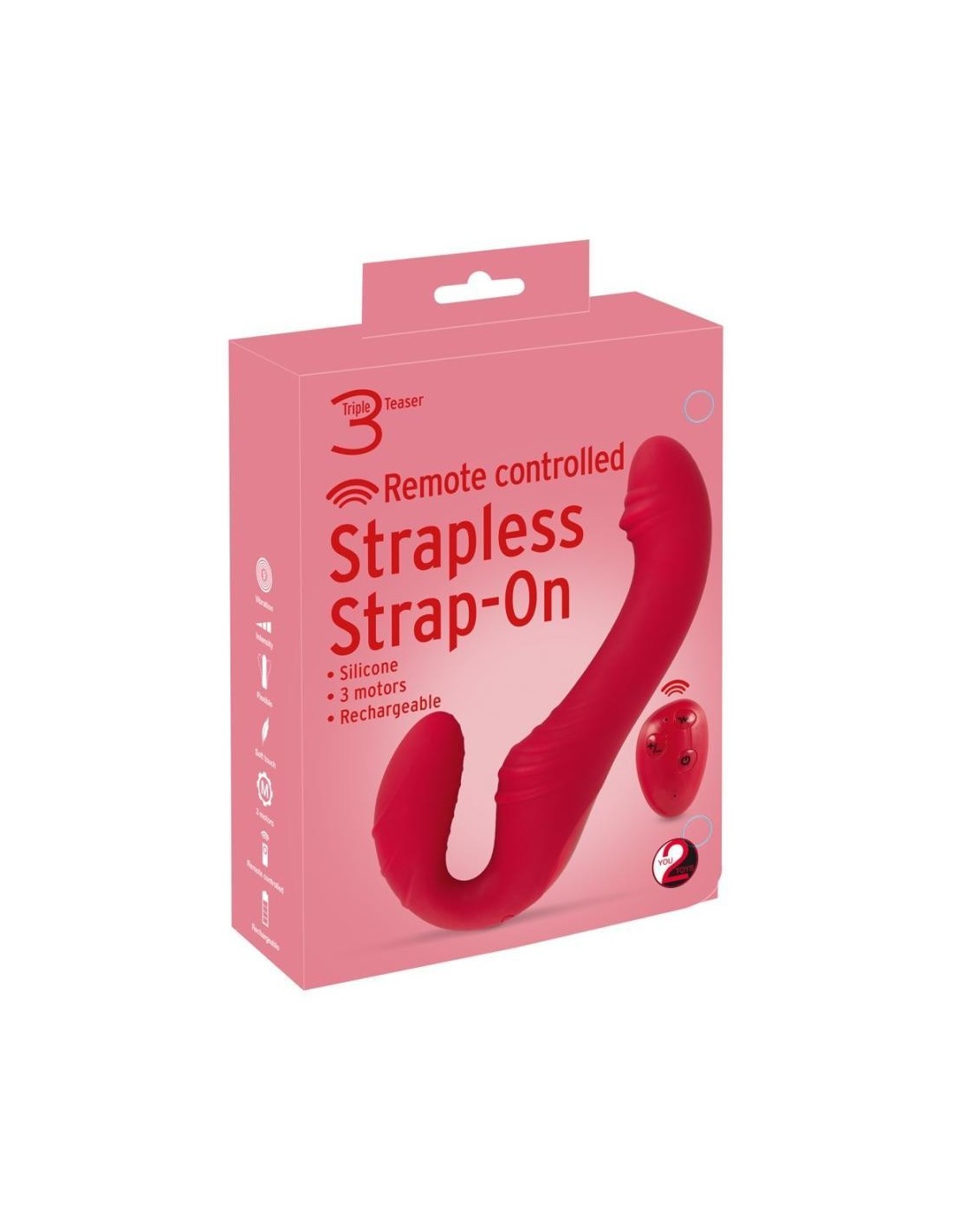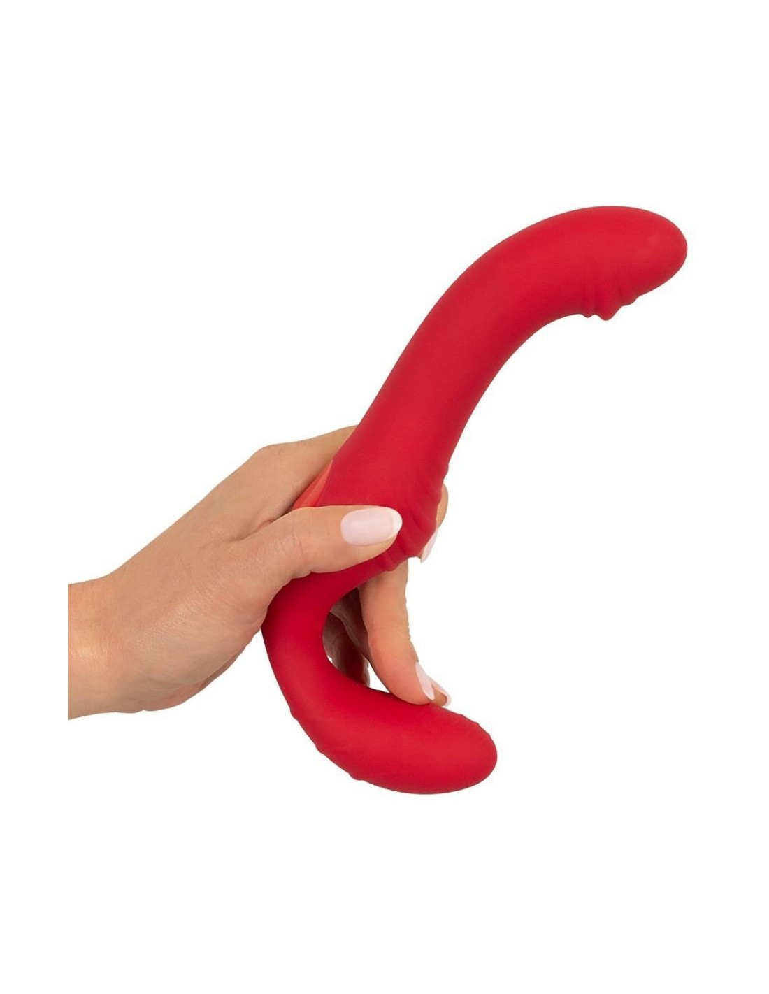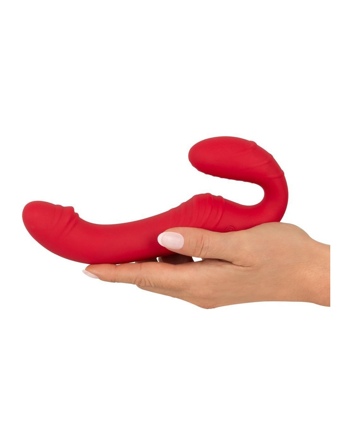 Strapless RC Strap-On 3 di You2Toys con doppio vibratore flessibile. Il vibratore, corto e decisamente ondulato, viene inserito nella vagina e tenuto in posizione dai muscoli vaginali. Così equipaggiato, il vostro partner potrà farsi coccolare con il vibratore più lungo e dalla texture stimolante.