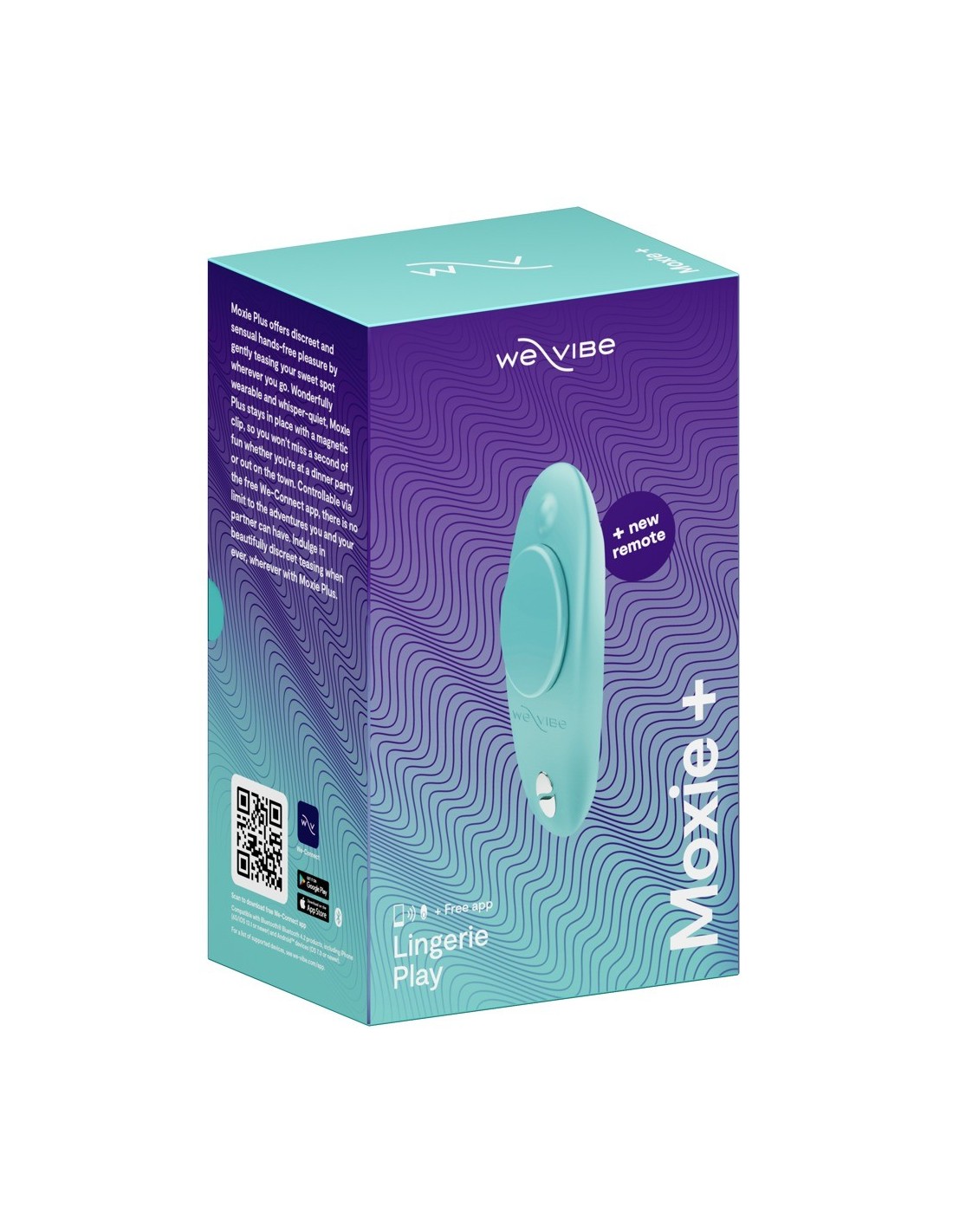 The ergonomic flat panty vibrator, Moxie+ from We-Vibe, is perfect for sensual, discreet and hands-free pleasure. It has 10 vibration modes that can be controlled easily via the practical remote control or the We-Vibe app (worldwide) on a smartphone – this means that it can be controlled by a partner!