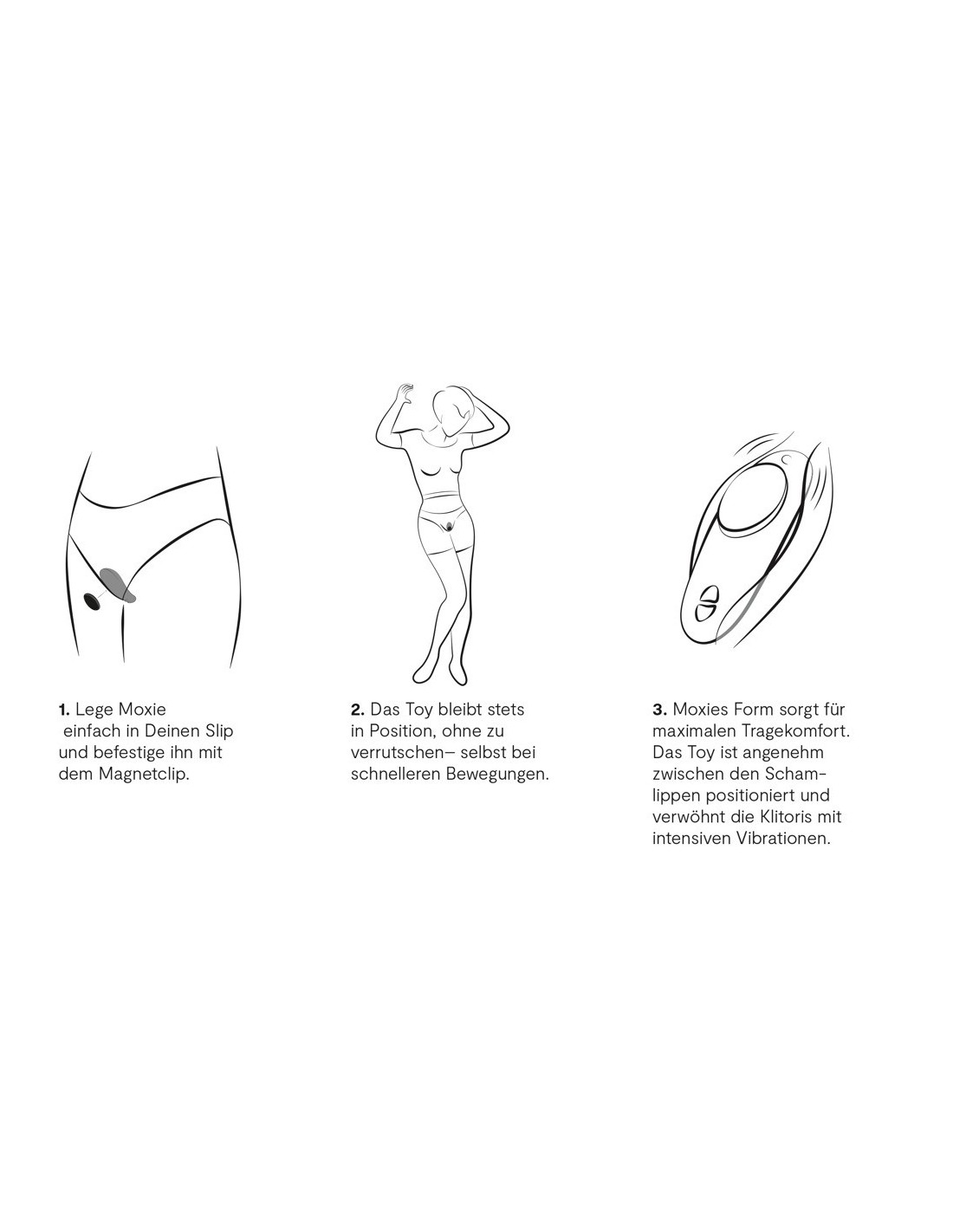 The velvety soft silicone vibrator can be attached to the panties with its non-slip magnet. It is perfectly shaped so that the vulva lips are slightly spread and the clitoris can be stimulated directly. The toy adapts perfectly to the body's movements e.g. during walking, dancing etc. It is also waterproof, which makes it great for having passionate moments in the bath or the shower.