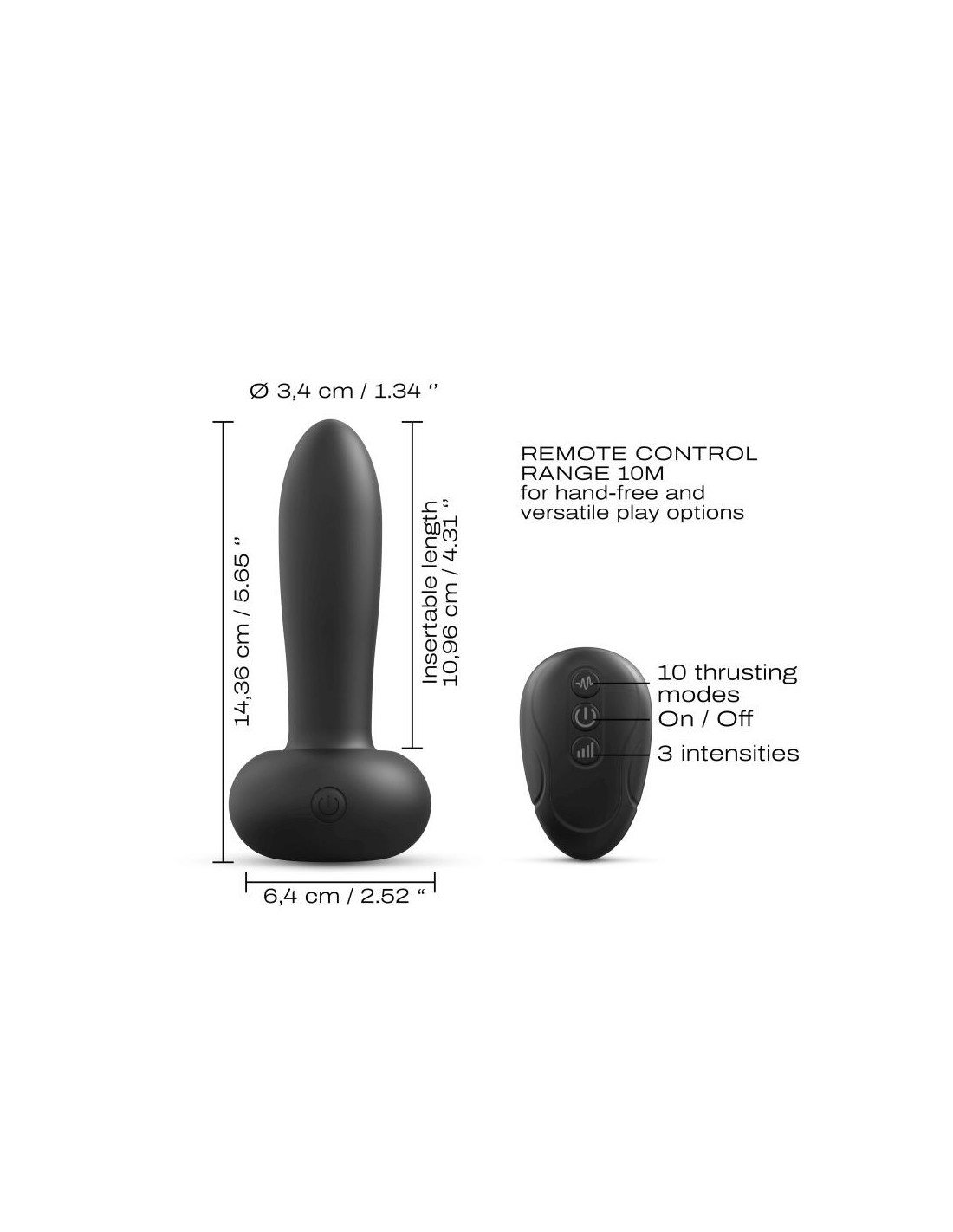 IL TUO VIAGGIO DI SENSAZIONI “PROFONDE” E UN'ESPERIENZA AUTENTICA “DI SPINTA” INIZIA CON DEEP THRUST! Scopri il piacere ineguagliabile del DEEP THRUST vibratore magnetico, telecomandato, movimento su e giù! La tecnologia Magnetic Thrusting consente un movimento saliscendi molto più silenzioso rispetto ai modelli classici, offrendo sensazioni autentiche con discrezione. Che tu preferisca la vagina o l'anale, la sua punta arrotondata e bulbosa consente un inserimento facile e progressivo. Inoltre, la sua testa imbottita ti dà comfort e la sua ampia base garantisce una penetrazione sicura. VANTAGGI : Spinta magnetica per una discreta stimolazione su e giù, molto più silenziosa dei modelli classici Anale e vaginale Testa liscia e imbottita per un maggiore comfort Base anatomica per una penetrazione sicura Punta arrotondata e bulbosa per un inserimento facile e graduale INFORMAZIONI TECNICHE : Dimensione : 14,36 x 6,4 x 3,4 cm / 5,65 x 2,52 x 1,34 pollici Lunghezza inseribile: 10,96 cm / 4,31 pollici Batteria agli ioni di litio Tempo di ricarica: 2,5 ore Durata: 50 min Portata remota: 10 m Livello di rumore: 50 db USB ricaricabile (cavo incluso) A prova di spruzzi