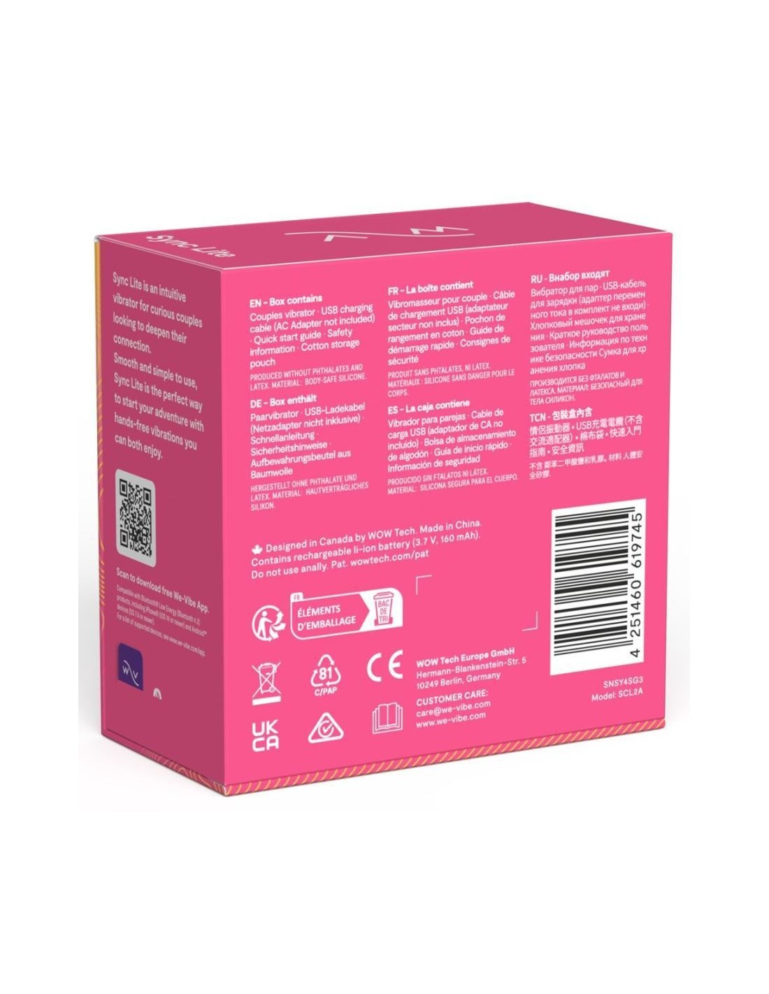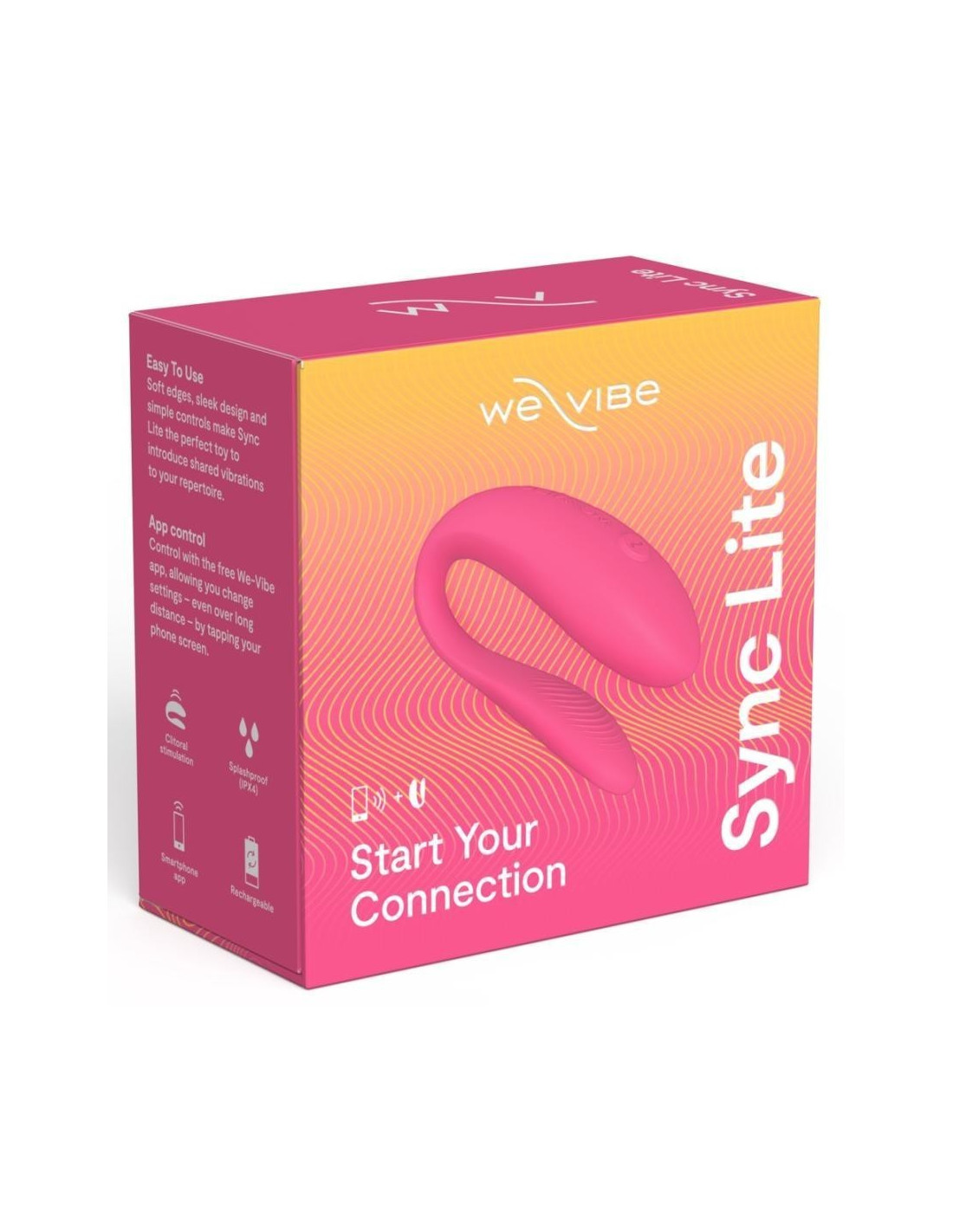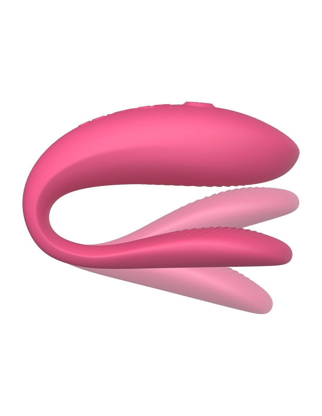 C-shaped couples vibrator Sync Lite from We-Vibe that pampers both during sex with 10+ vibration modes. With its newly revised design, the Sync Lite is slimmer and lighter than its predecessor and is even more comfortable to wear during sex for intense G-zone and clitoral stimulation. At the same time, the pliable, soft silky silicone vibrator remains beautifully flexible to adapt perfectly to bodies and movements.
