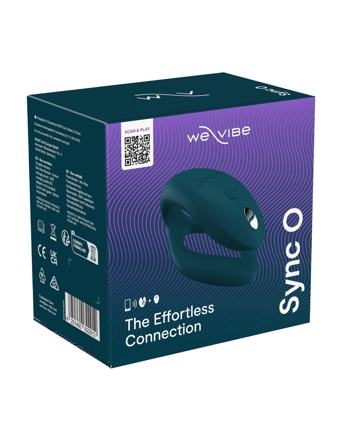 The vibrations are controlled easily and conveniently via your smartphone or the included remote. The Sync O is compatible with the We-Vibe app for IOS and Android via Bluetooth. Individual stimulation programmes can also be created here. Synchronous vibrations to the rhythm of music are also possible. We-Connect also enables sexual closeness at a distance – worldwide. Additional voice, chat and video functions are also integrated in the app. Fun anywhere is possible as the Sync O is waterproof.