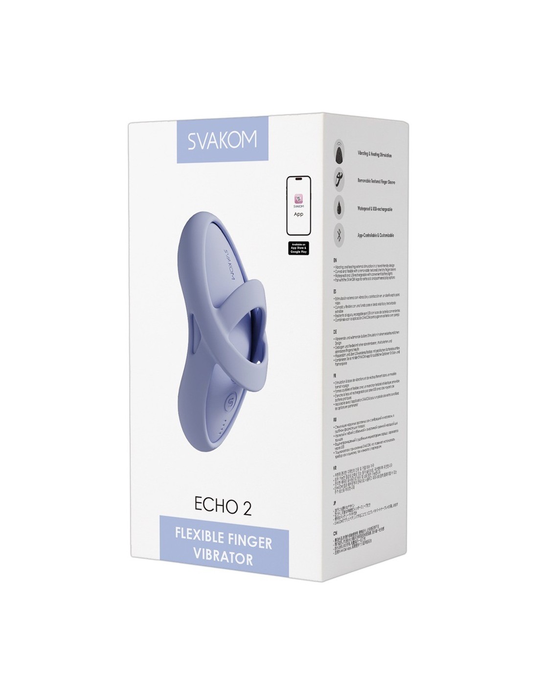 Il vibratore da dito flessibile Echo 2 di SVAKOM, piccolo e leggero, è perfetto per stimolare le zone di piacere esterne quando si gioca da soli o in coppia. I passanti in silicone elastico possono essere fatti scivolare senza sforzo sul dito, permettendo al cuscinetto ergonomicamente curvo di adattarsi perfettamente. Questo lo rende facile da guidare e da usare. Il silicone morbido come la seta e le delicate scanalature assecondano la pelle e i punti erogeni. La guaina in silicone per le dita può anche essere rimossa per utilizzare Echo 2 come un vibratore liscio da appoggiare.
