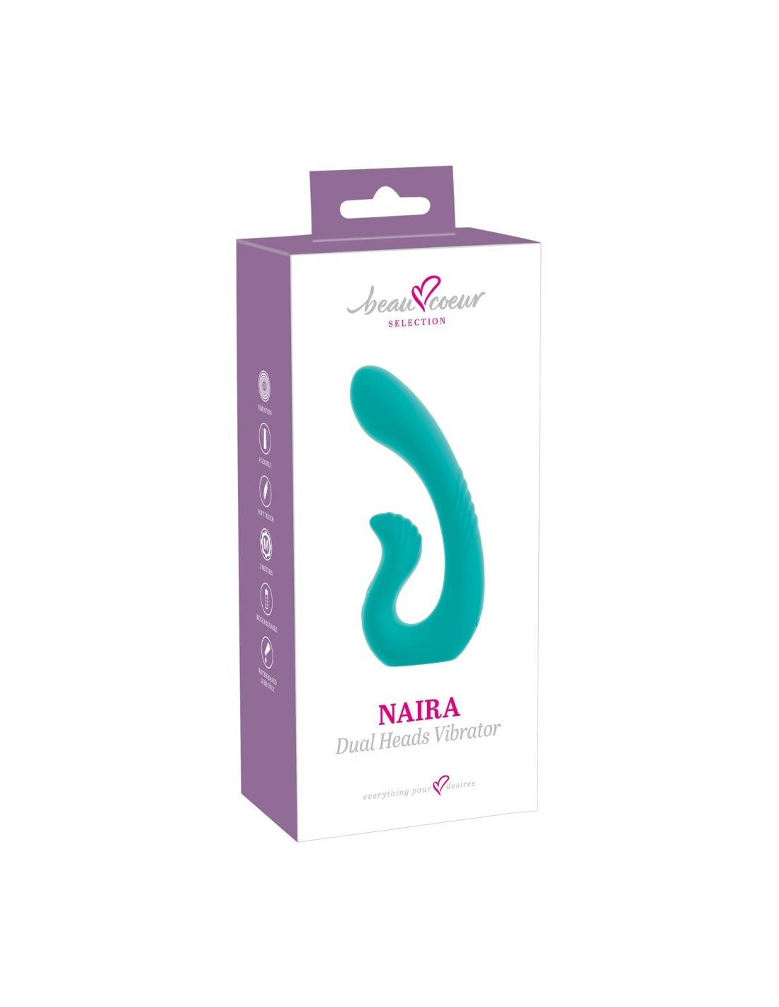 Il vibratore NAIRA Dual Heads di beau cœur colpisce per il suo design maneggevole, i colori freschi e le texture eccitanti. Dotato di 2 motori di potenza silenziosi (uno per ogni testa), il vibratore doppio coccola sia dentro che fuori. Inserito vaginalmente o analmente, offre un'ampia gamma di possibilità per un eccitante divertimento sincronizzato con 10 modalità di vibrazione. Le modalità possono essere controllate separatamente con la semplice pressione di un pulsante e combinate individualmente per creare il vostro programma di coccole personale. Un doppio gioco perfetto per un piacere senza limiti!