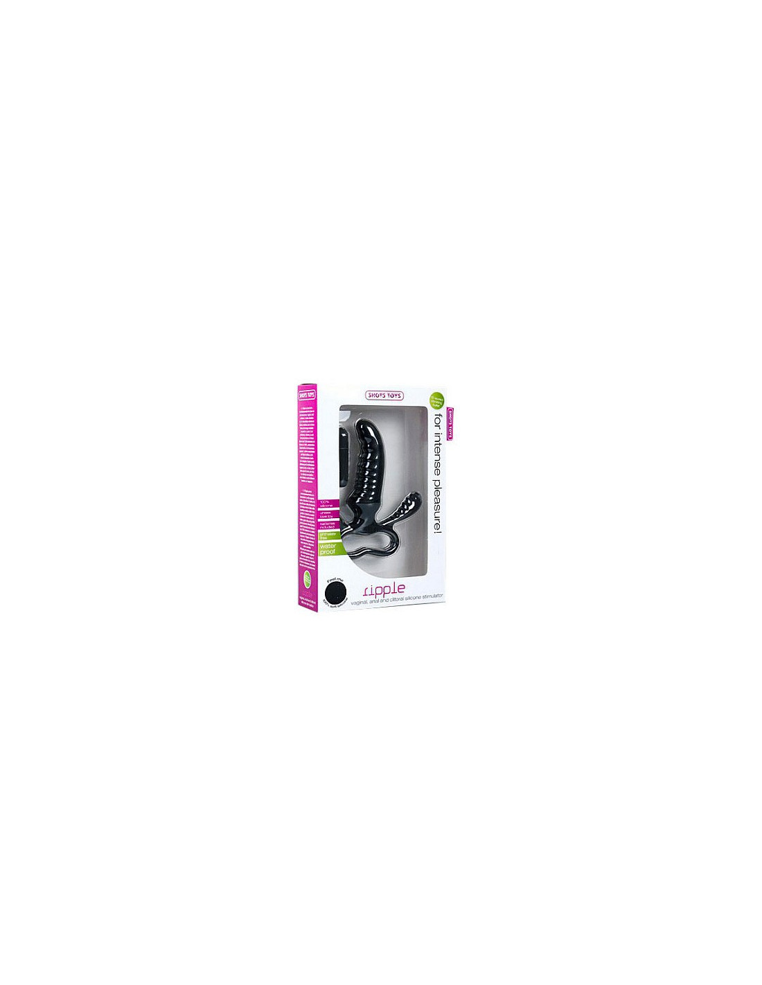 Ripple garantisce tre diversi tipi di stimolazione simultanei: vaginale, anale e clitoridea. Il vibratore esterno a 10 velocità assicura una stimolazione esagerata del clitoride, in quanto la perfetta forma è in grado di trovare immediatamente il vostro Punto-G. Allo stesso tempo, la sottile coda andrà a stimolare il retto. Il puro silicone al 100% con cui è realizzato, mantiene perfettamente la temperatura corporea, raggiungendola rapidamente. L'impugnatura resistente vi garantisce una presa ottimale per tenere sempre il controllo. Ripple può essere utilizzato per penetrazioni anali e vaginali assicurando il piacere a entrambi i partner. Il vibratore esterno può essere utilizzato anche separatamente. Colore: Nero Dimensioni: 23 x 15 x 5 cm Peso: 200 gram