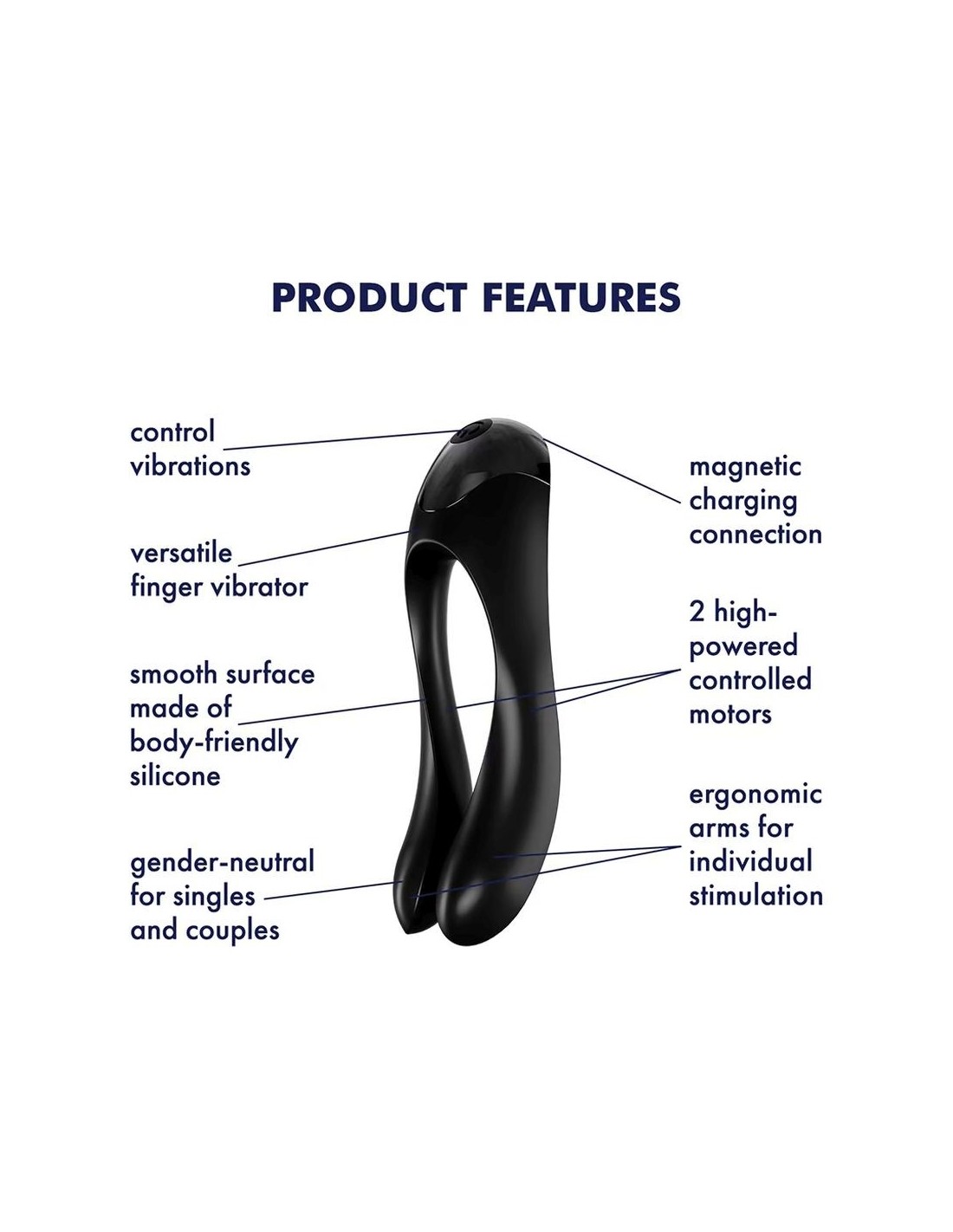Il Candy Cane è un prodotto ideale per i principianti e stimola tramite i bracci flessibili e 2 motori. Con la sua versatilità, è adatto per la stimolazione di tutte le zone erogene, inclusa la stimolazione del punto G. - Vibratore versatile da dito per stimolare tutte le zone erogene - 12 programmi di vibrazione svariati e potenti - Realizzato in morbidissimo silicone PREMIUM, delicato sulla pelle, liscio al tatto ed estremamente igienico Innumerevoli utilizzi possibili con il Satisfyer Candy Cane Il Satisfyer Candy Cane coccola sia principianti che esperti con le sue versatili possibilità di applicazione: grazie alla forma ergonomica e ai 2 potenti motori situati nelle estremità flessibili, questo prodotto unisex è il complemento ideale per divertirsi da soli o in coppia. Il Satisfyer Candy Cane può essere usato come vibratore clitorideo, ma i suoi bracci mobili possono anche massaggiare il punto G. È adatto inoltre per la stimolazione dei capezzoli, del perineo o di altre zone erogene. Nonostante le sue dimensioni contenute, è un vero concentrato di potenza: travestito da innocente vibratore da dito, ti conquisterà con vibrazioni profonde e potenti senza ulteriori indugi. Satisfyer Candy Cane: vibratore da dito impermeabile realizzato in morbido silicone Il Satisfyer Candy Cane è realizzato in silicone delicato sulla pelle, particolarmente igienico e in grado di offrire una sensazione di morbidezza. Questo vibratore da dito è ovviamente impermeabile (IPX7) e può quindi essere utilizzato sotto la doccia o nella vasca da bagno, una caratteristica che lo rende anche facile da pulire. A differenza della maggior parte degli altri vibratori da dito e dei prodotti di bassa gamma, il Satisfyer Candy Cane è dotato di batterie integrate che possono essere ricaricate con il cavetto di ricarica USB incluso. 2 motori Power superpotenti Impermeabile (IPX7) Modalità sussurro Batteria agli ioni di litio Cavo di ricarica magnetico USB incluso Facile da pulire Caratteristiche "Candy Cane" Larghezza: 35 mm Altezza: 38 mm Adatto per: Coppie, Donne Lunghezza: 120 mm Peso: 22.7 g Con vibrazione: Sì Stimolazione: Clitoridea Impermeabile: Sì Materiale: Resina ABS , Silicone