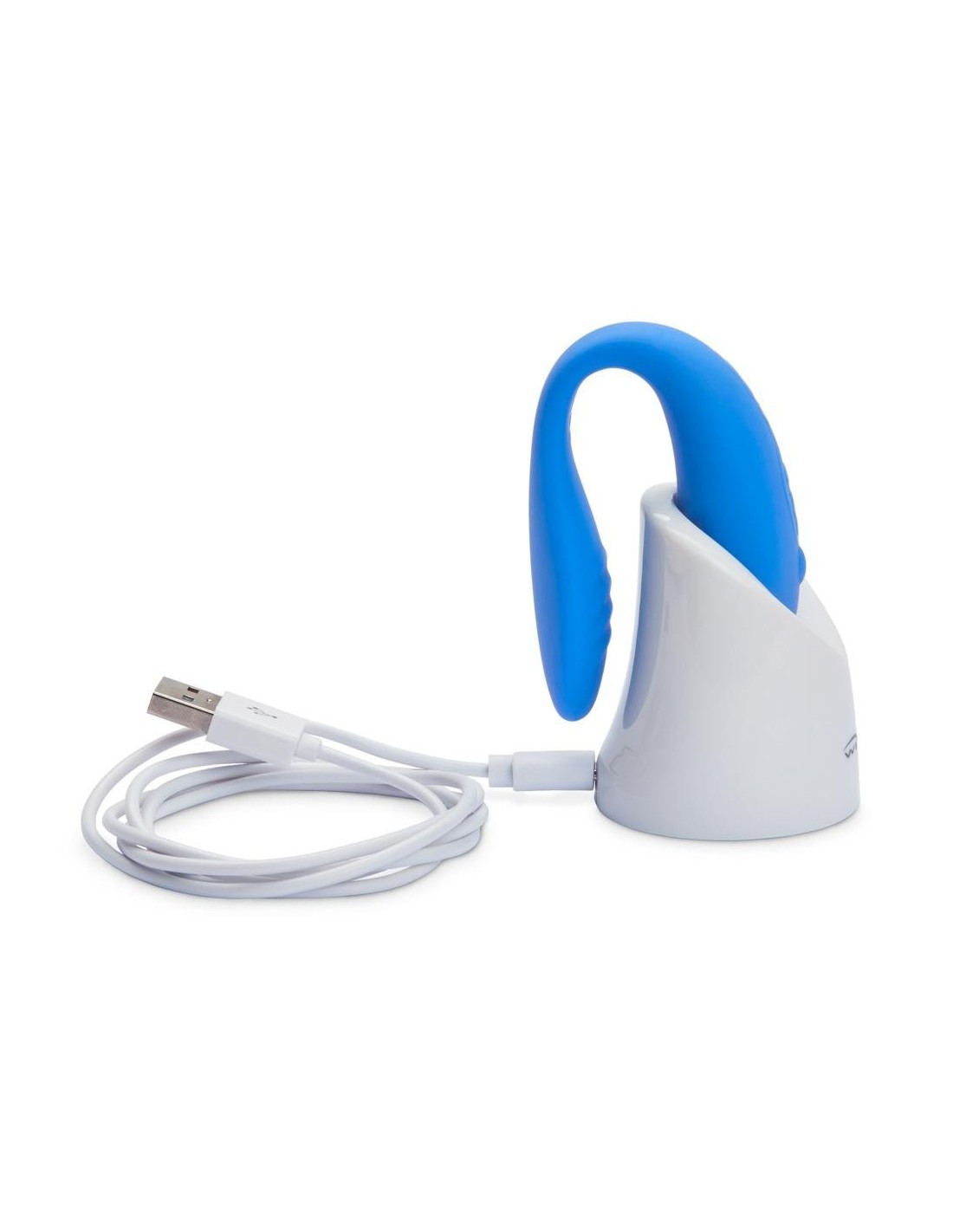 This blue, waterproof couple's vibrator provides completely new moments of pleasure. It has 2 arms (one arm is thicker than the other) and there are also grooves on the inside of each arm. She should wear the U-shaped toy during sex for additional G-spot and clitoris stimulation. However, you will both get to enjoy the powerful motor´s whisper quiet vibrations. The middle part is narrow and flexible. 10 vibration modes. It can be recharged with the included charging station and USB cable. The remote control (range: up to 3 m) is included. Blue. 8.6 x 9.8 x 11 cm.