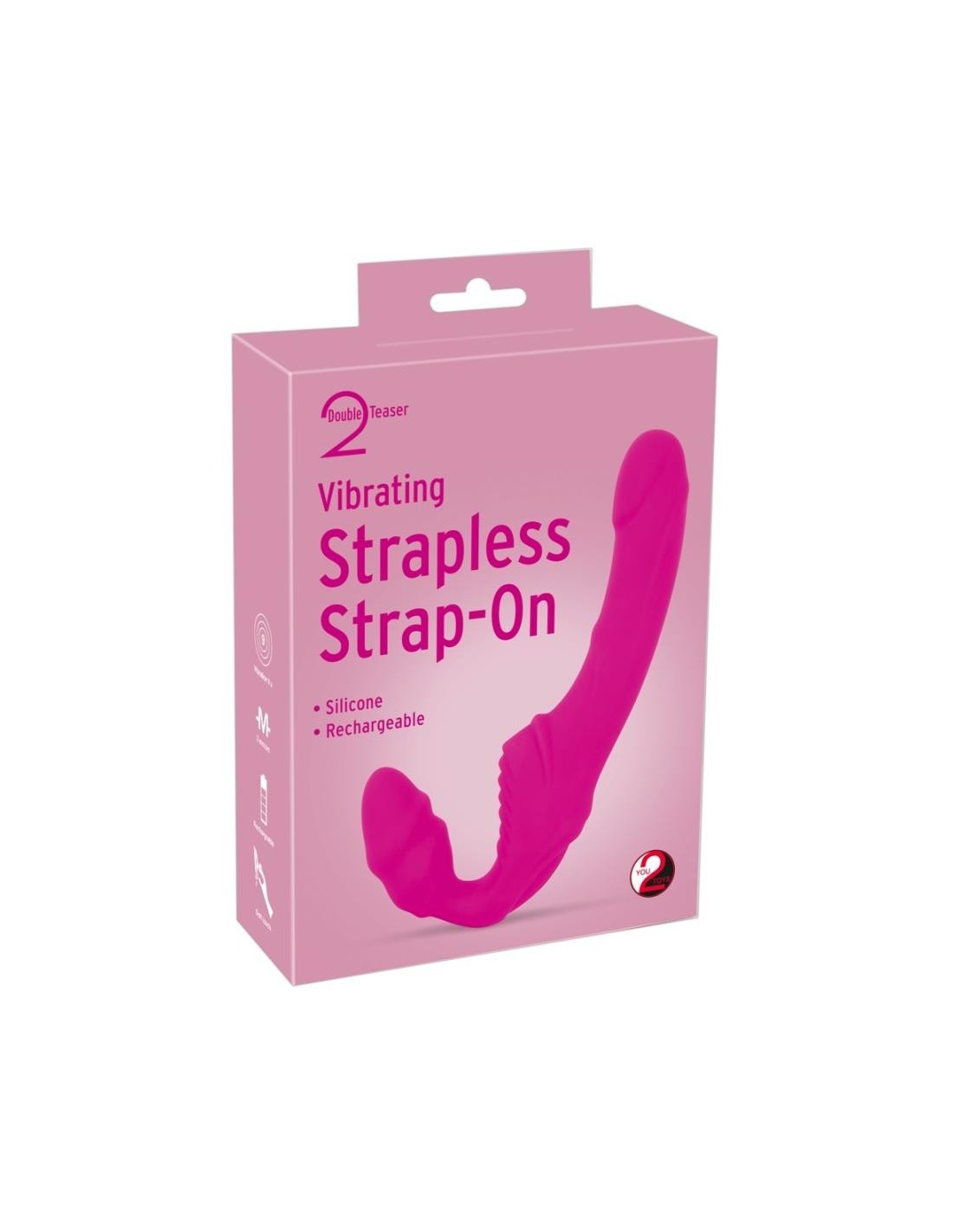 Vibrating Strapless Strap-On di You2Toys per selvaggi giochi strap-on ed eccitanti cambi di ruolo senza bisogno di un'imbracatura. L'estremità più corta e spessa del vibratore viene inserita vaginalmente e tenuta con il pavimento pelvico. L'asta più lunga può essere usata per il piacere anale o vaginale. 9 modalità di vibrazione intensificano il momento di piacere. Una texture morbida e setosa al tatto, scanalature di stimolazione pronunciate e un cuscinetto scanalato per il clitoride completano il piacere. Impermeabile.